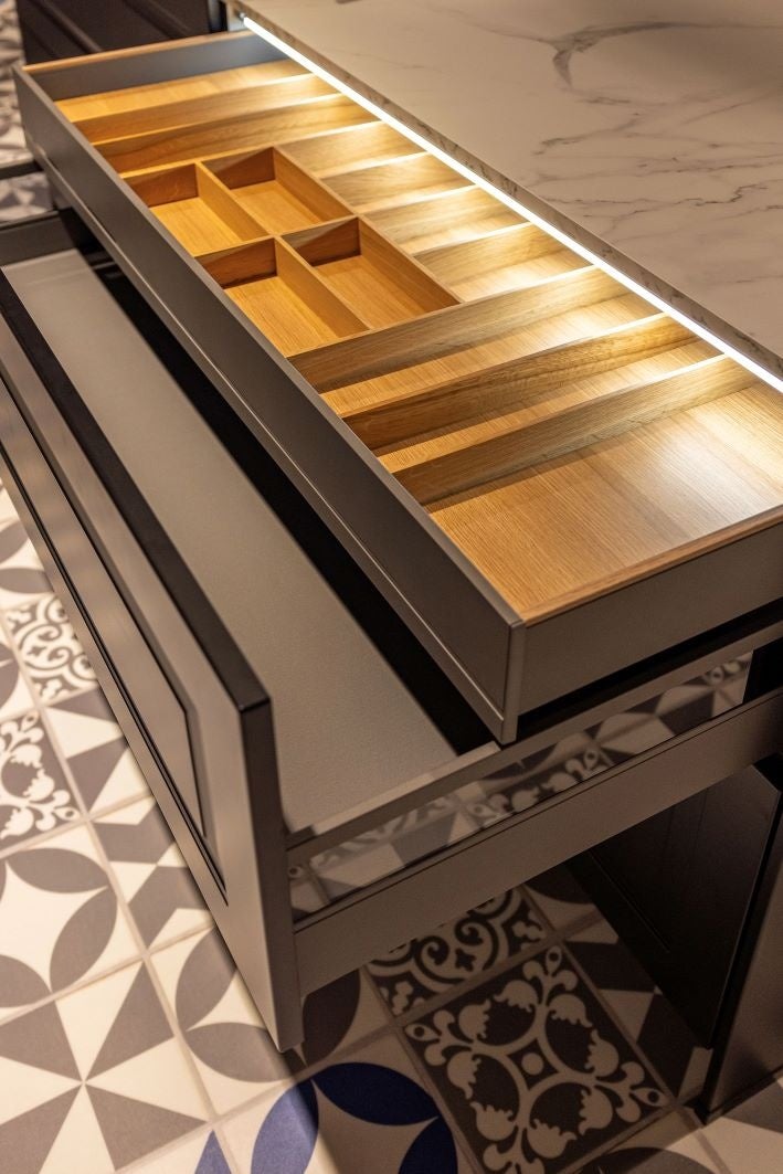 キッチンデザインにおけるカスタマイズの需要も急速に高まっています。このニーズに応えるため、Pronorm(プロノーム)、Eggersmann(エガーズマン)、Rational(ラショナル)などのブランドメーカーは、ヘティヒの「AvanTech YOU(アバンテック ユー)」引き出しシステムを活用し、デザインと機能性を最大限に引き出す創造的な可能性を提供しています。