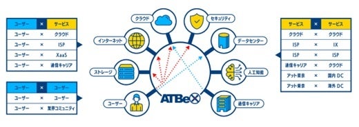 ATBeX(AT TOKYO Business eXchange、アットベックス)は、「つながる、広がる」を実現するネットワーク接続を提供します。メガクラウドをはじめ、さまざまなITサービス、データセンター間接続を、お客さまの要件に合わせてオンデマンドで利用することを可能にするネットワークプラットフォームサービス、それがATBeXです。
