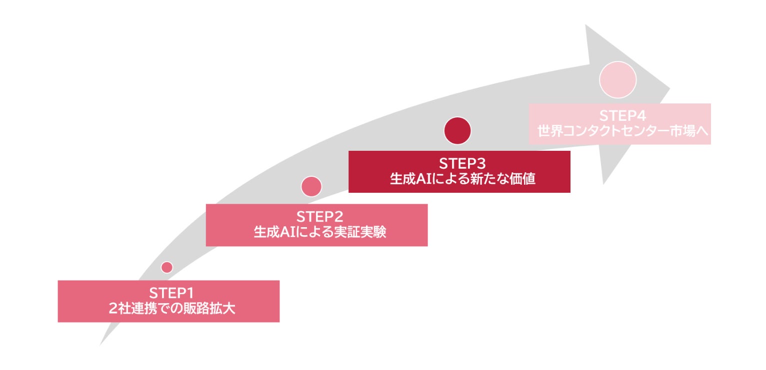コンタクトセンターを構築・運営するには、回線や、各システムをそれぞれ専門の事業者から調達し統合するのが通常です。当社は、セット販売での連携強化により、コンタクトセンターソリューションのインフラである閉域網から、クラウドPBX※2、STT※3、さらにはFAQリコメンデーションなどのオペレーター支援ツールまでを一元化して提供します。さらに、両社の販路を活用し、各ソリューションの拡販を促進することで、国内のコンタクトセンターシステム市場での強い地位の獲得を目指します。