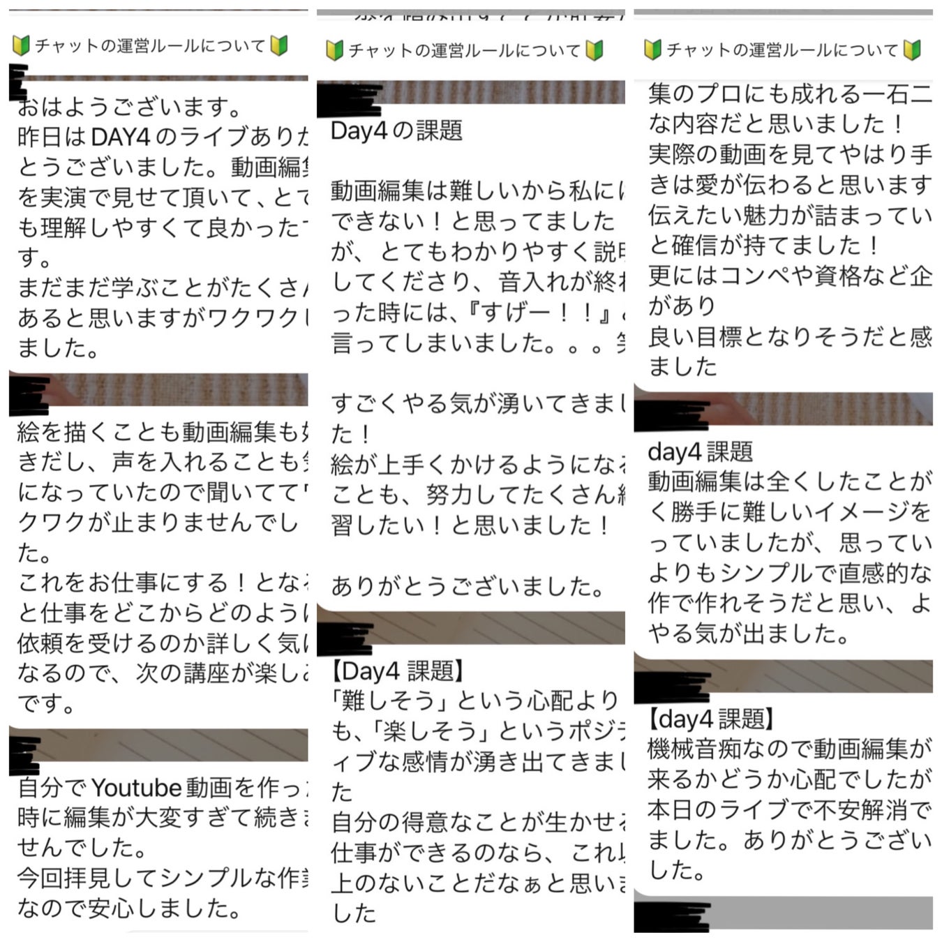 ・動画編集を実演で見せて頂いて、とても理解しやすくてよかったです。まだまだ学ぶことがたくさんあると思いますがワクワクしました。