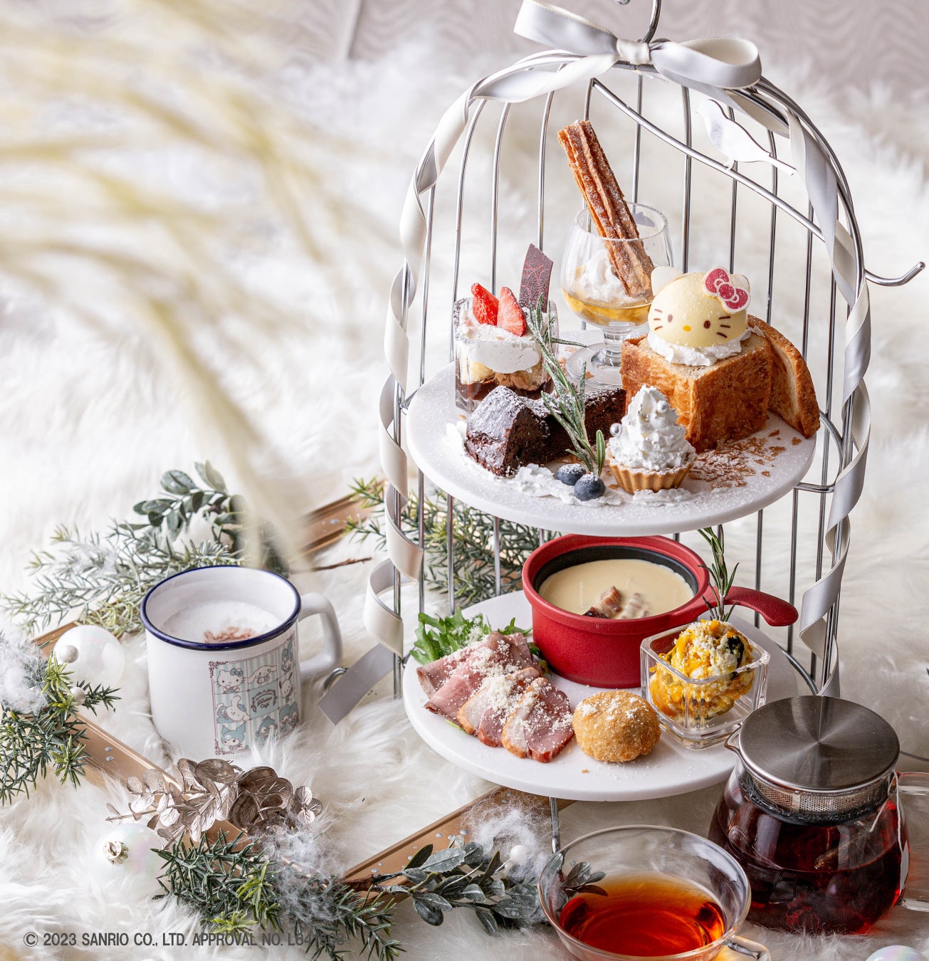 サンリオキャラクターズ ガーデンカフェが贈る、冬季限定のアフタヌーン・ティーセット。