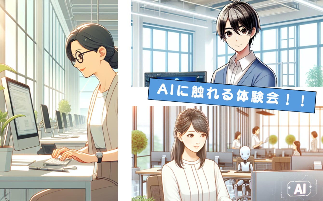 会社紹介・部署紹介、就業時のサポート体制のご説明、募集要項・求める人物像、AIを使った業務の体験(AIアプリを活用した画像生成や資料作成)、質疑応答 等