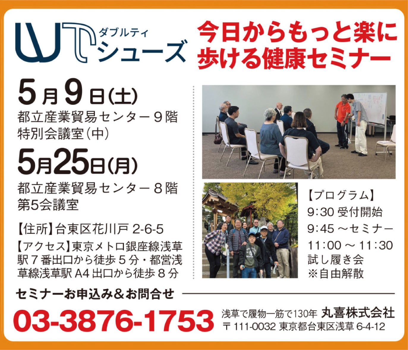 明治28年創業・老舗靴メーカー丸喜株式会社が開発&提供するミドルエイジ向けシューズブランド「WTシューズ」(本社:東京都台東区 代表取締役:河原勢朗)とアクティブなシニアライフを応援する情報メディア「はいから」とのコラボイベントを開催します。