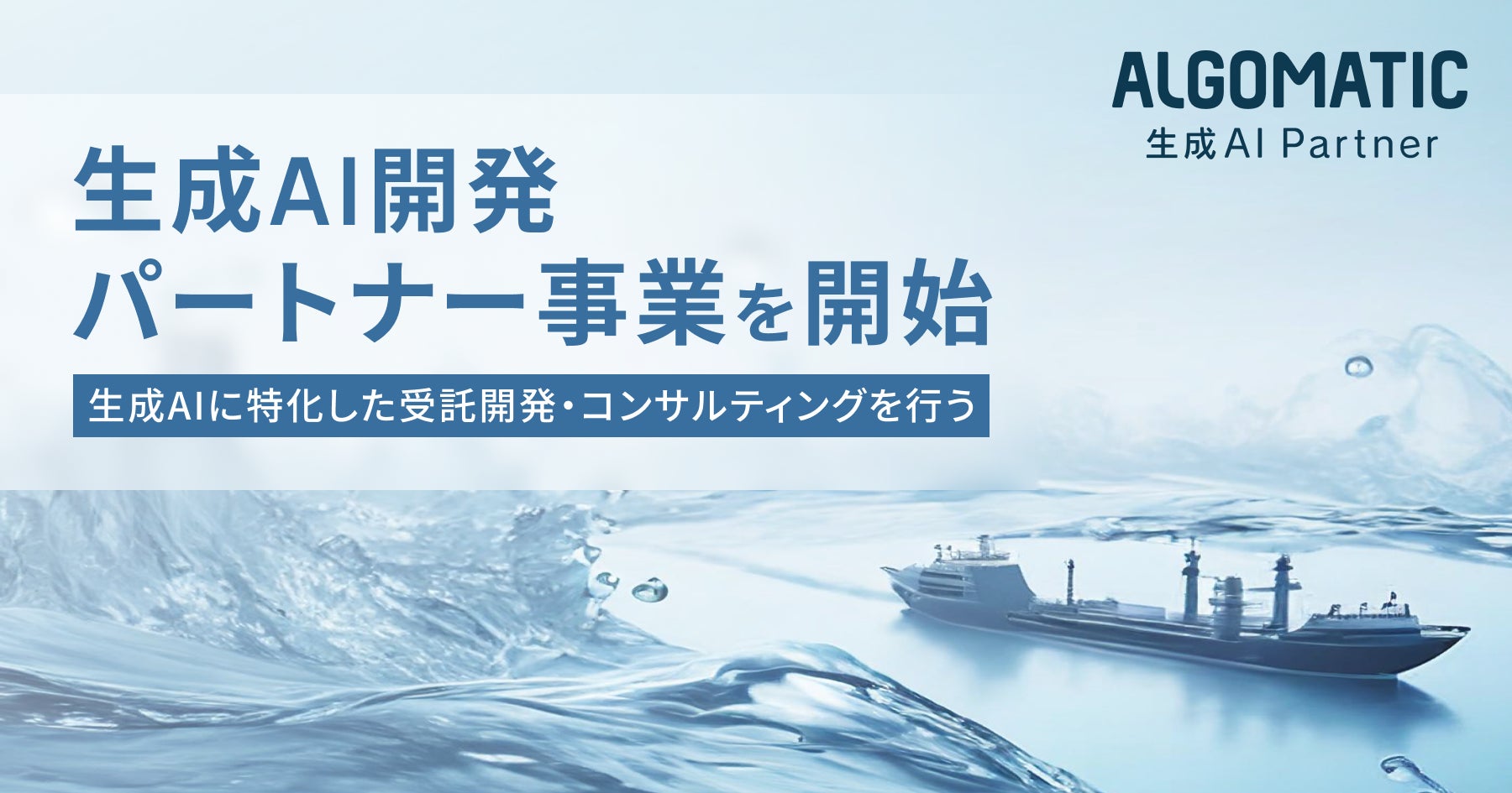 生成AI技術を活用したサービスの開発・提供を手掛ける株式会社Algomatic(本社:東京都港区、代表取締役社長:大野峻典、以下Algomatic)は、生成AIに特化した受託開発・コンサルティングを行う部門「Algomatic 生成AI Partner」を設立し、個社のニーズに最適化した開発支援を提供する「生成AI開発パートナー事業」を新たに開始したことをお知らせいたします。