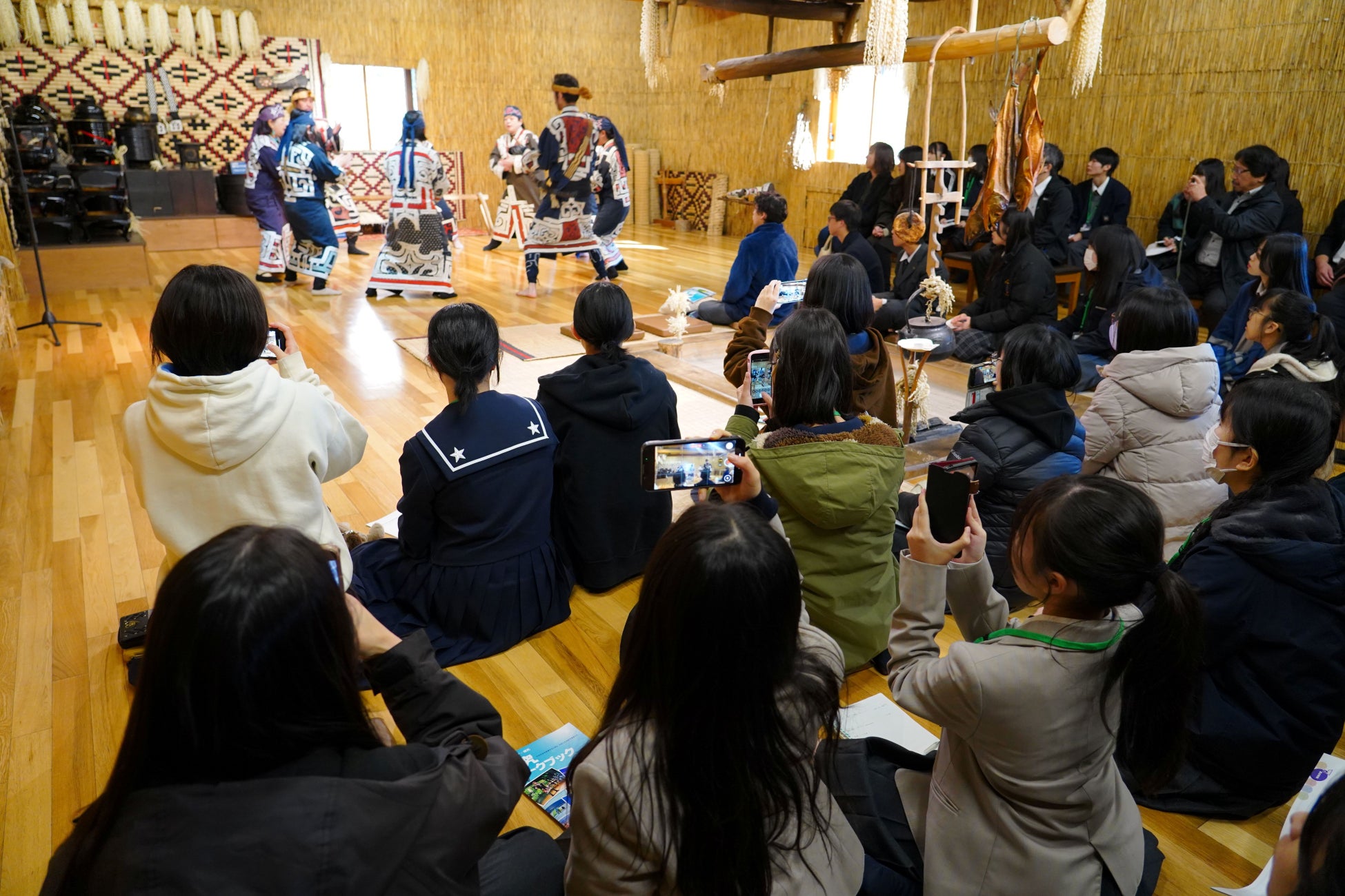 ※ウポポイ探究学習プログラム…ウポポイで働く職員や登別・洞爺エリアの地元の方との交流を中心に、アイヌ民族の多様な歴史や文化に触れ、自然環境や火山、温泉、観光、地域産業などを知ることにより、「共生社会」を実現させるために必要なことを参加者一人一人が考えるプログラムです。実施主体:公益財団法人アイヌ民族文化財団