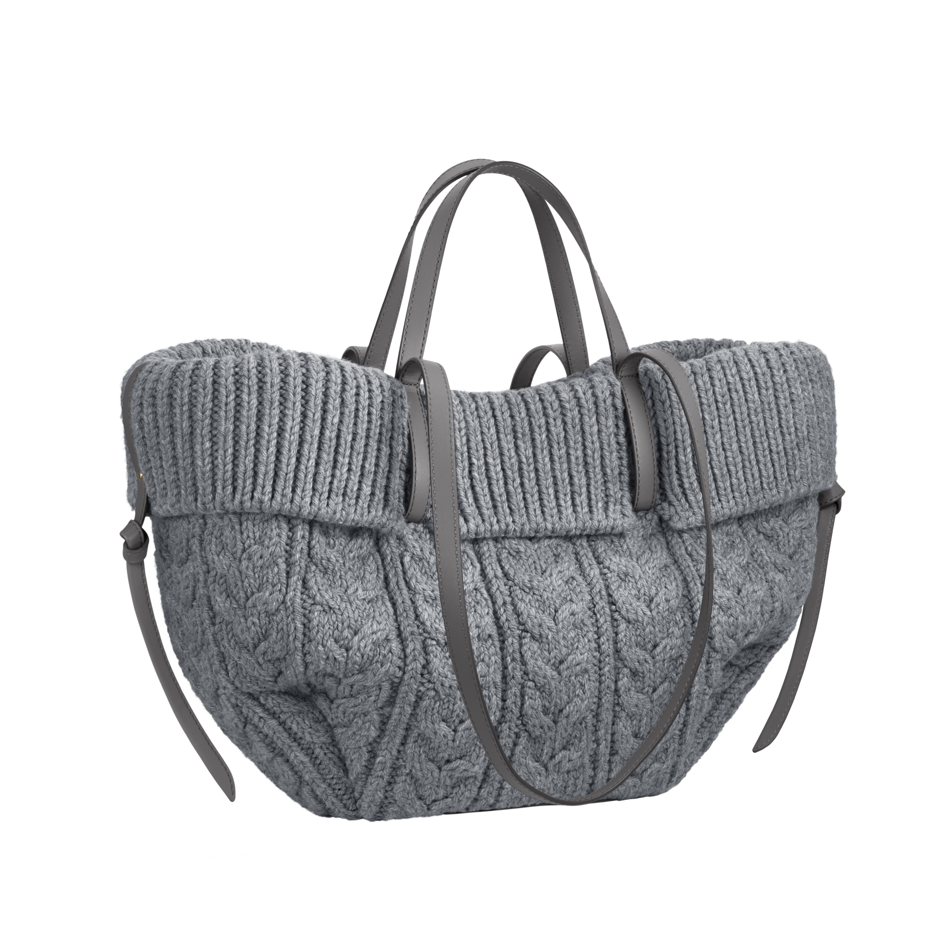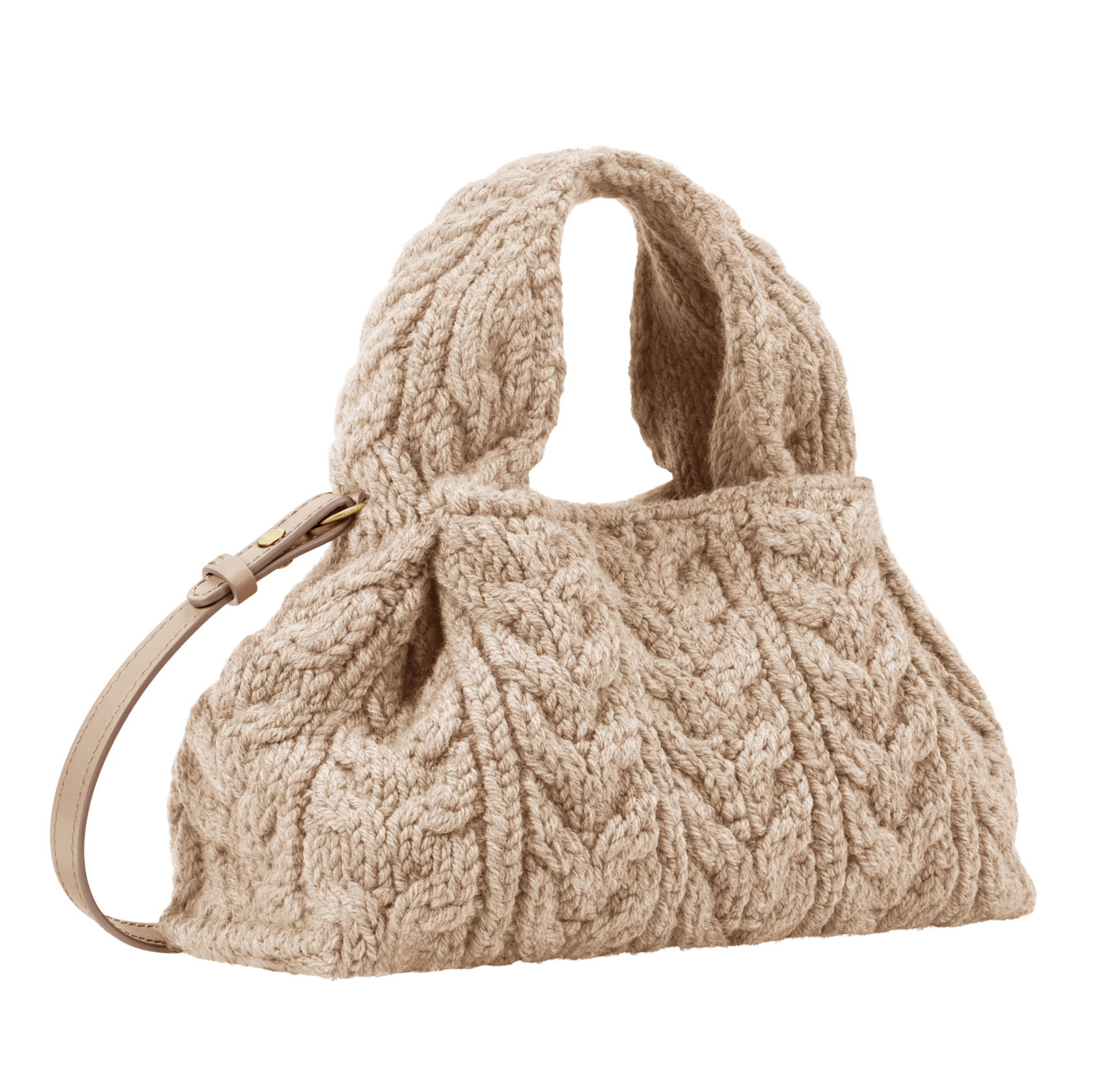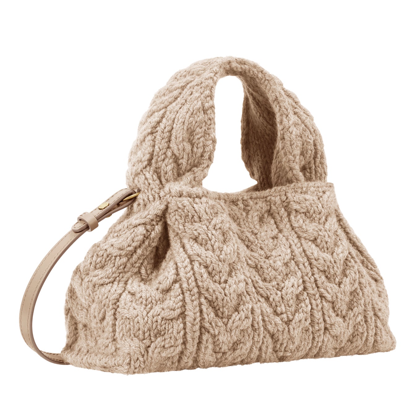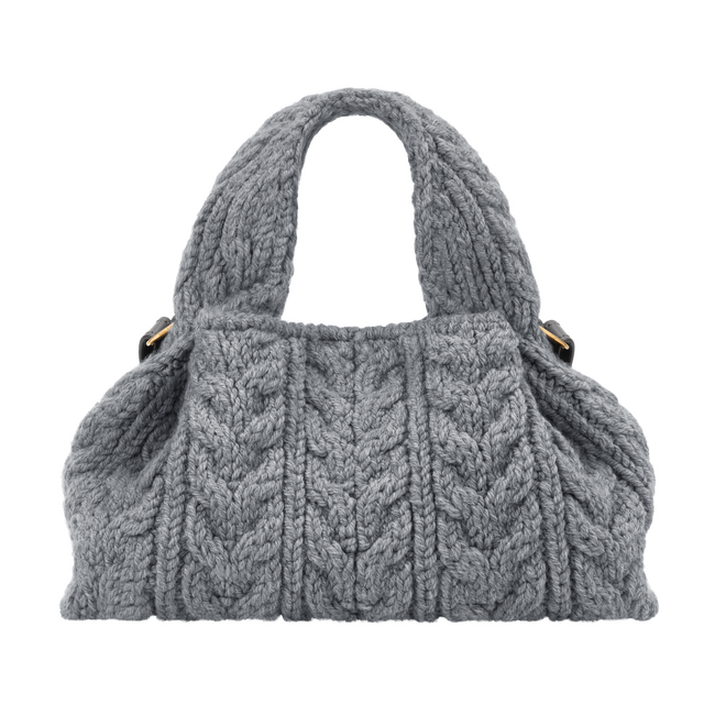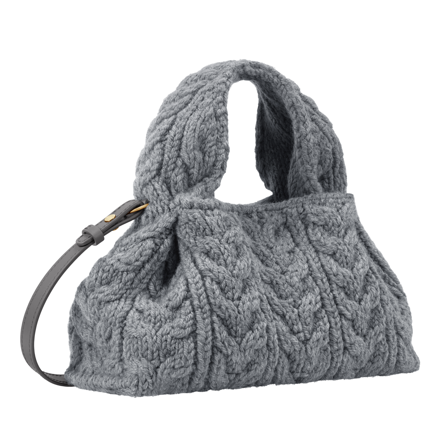 ニット部分には、優れた品質で知られるウルグアイの草原産のメリノウールを100%使用し、イタリアで丁寧に編み上げました。型に合わせてパーツをカットして縫い合わせるのではなく、フルファッション(成型編み)製法によりバッグの型に合わせて直接編み上げられ、多くの手作業工程を経て仕上げられています。これにより、レザーバッグのフォルムを忠実に再現しました。