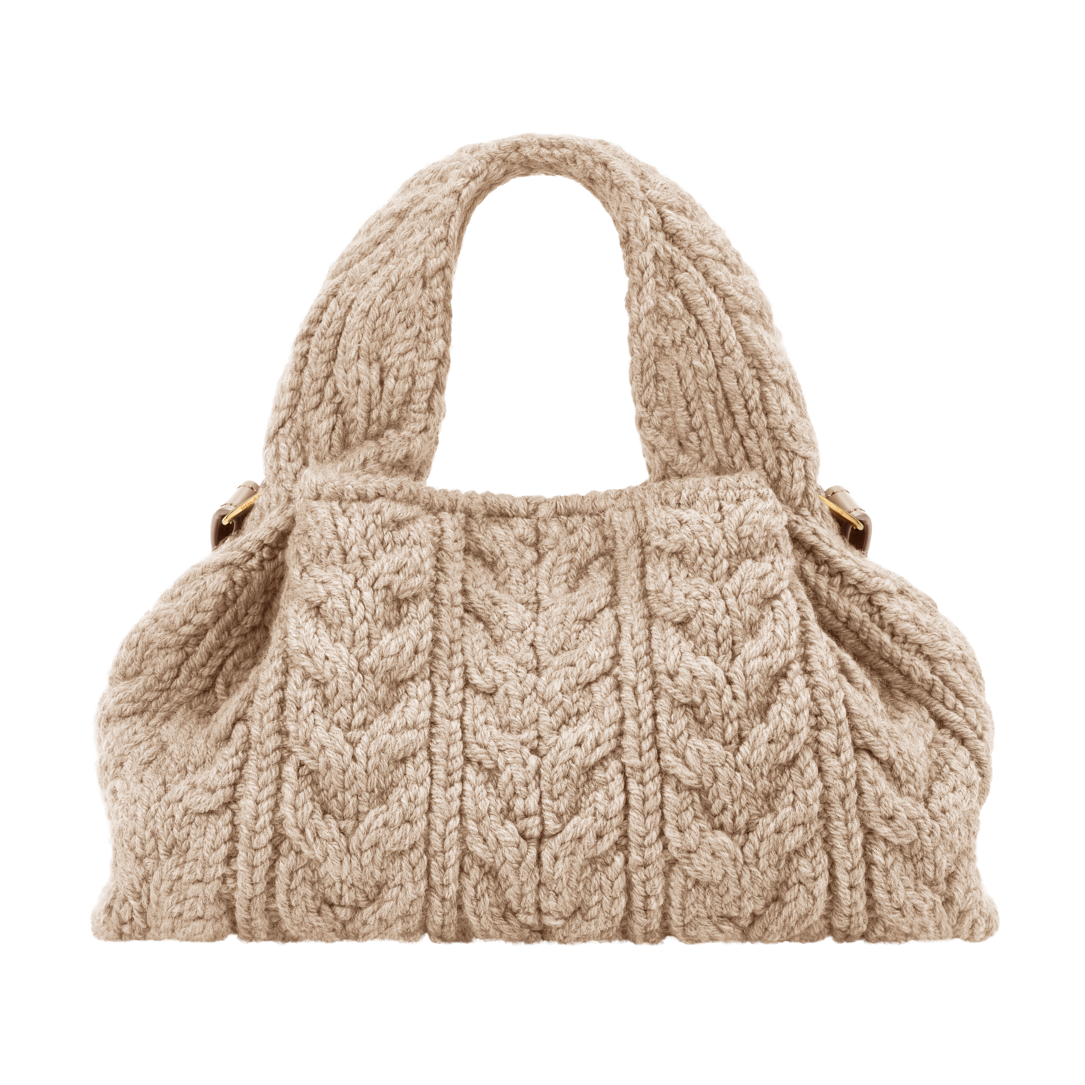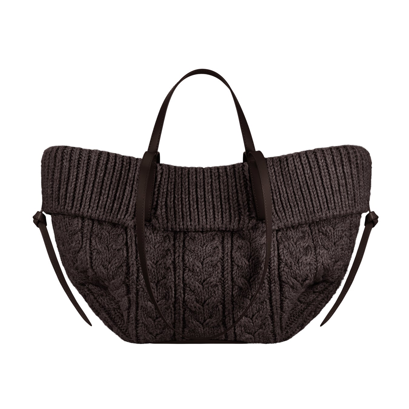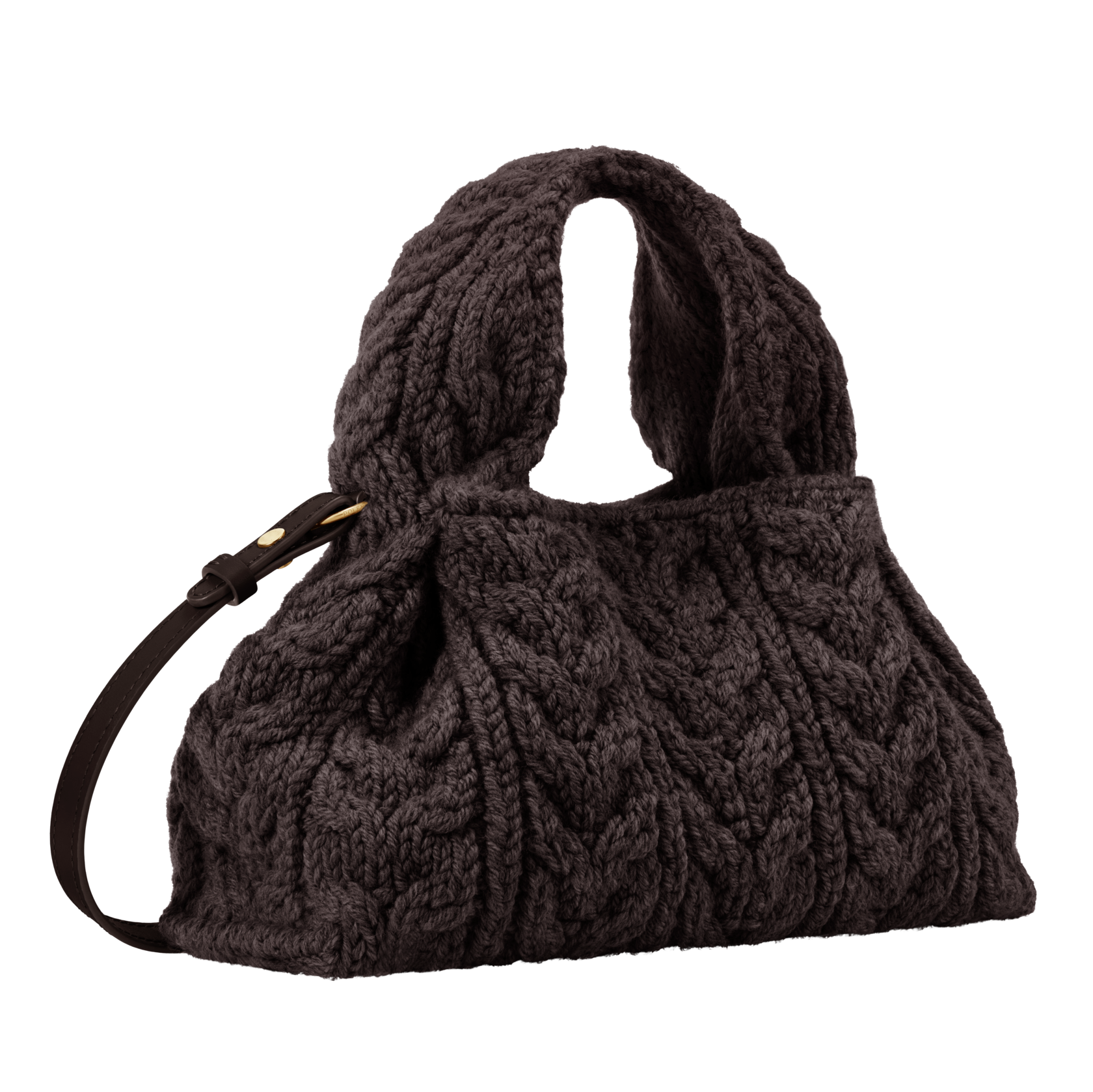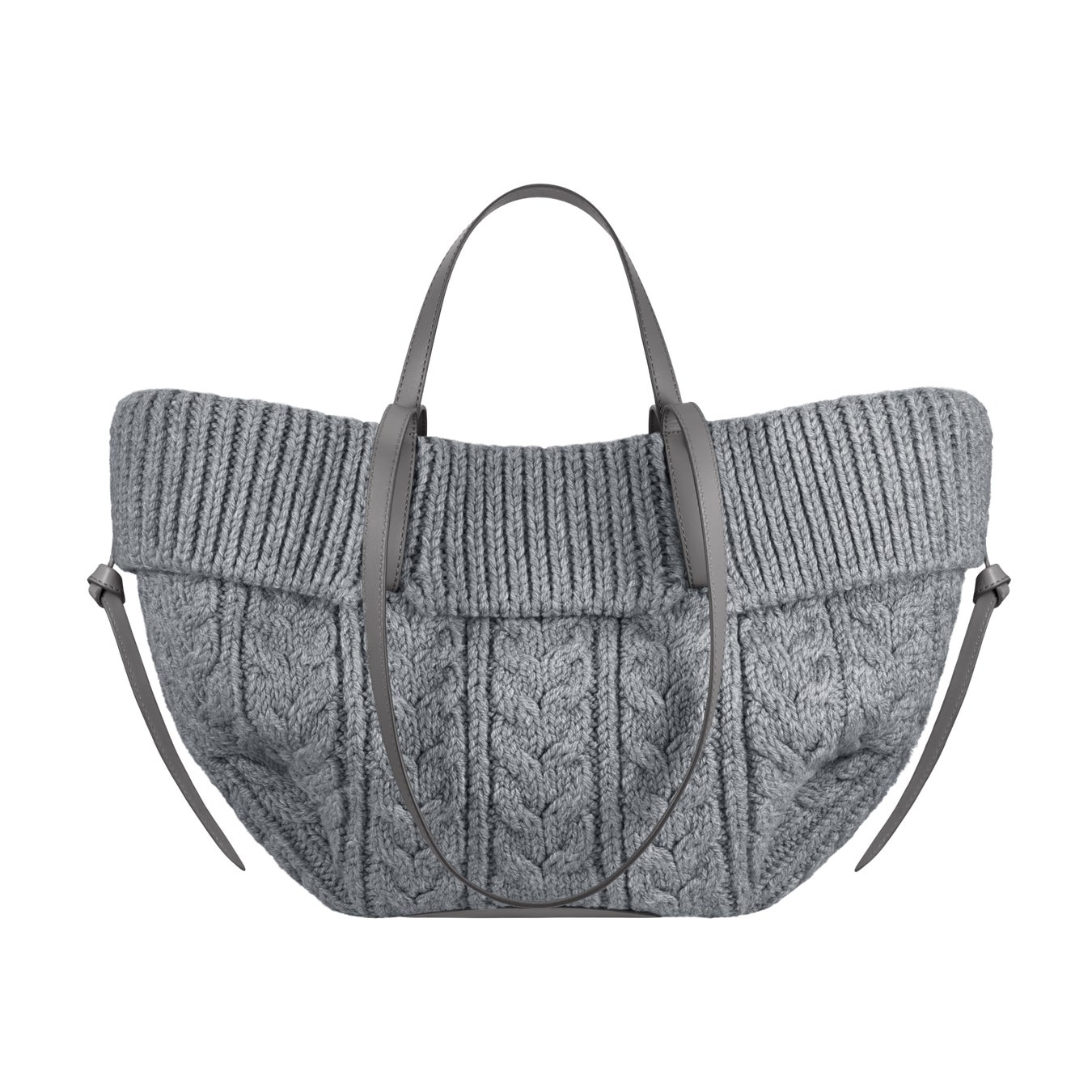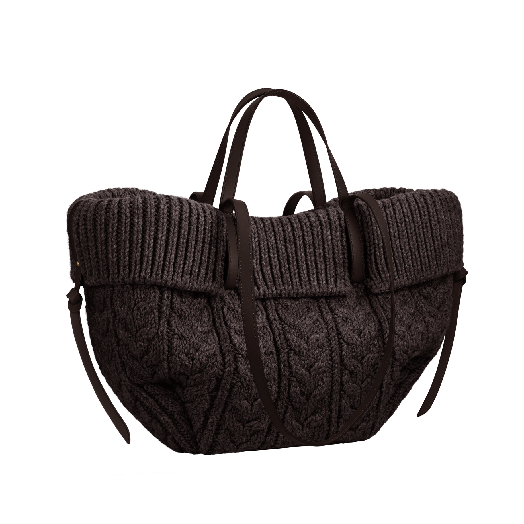 ニット部分には、優れた品質で知られるウルグアイの草原産のメリノウールを100%使用し、イタリアで丁寧に編み上げました。型に合わせてパーツをカットして縫い合わせるのではなく、フルファッション(成型編み)製法によりバッグの型に合わせて直接編み上げられ、多くの手作業工程を経て仕上げられています。これにより、レザーバッグのフォルムを忠実に再現しました。