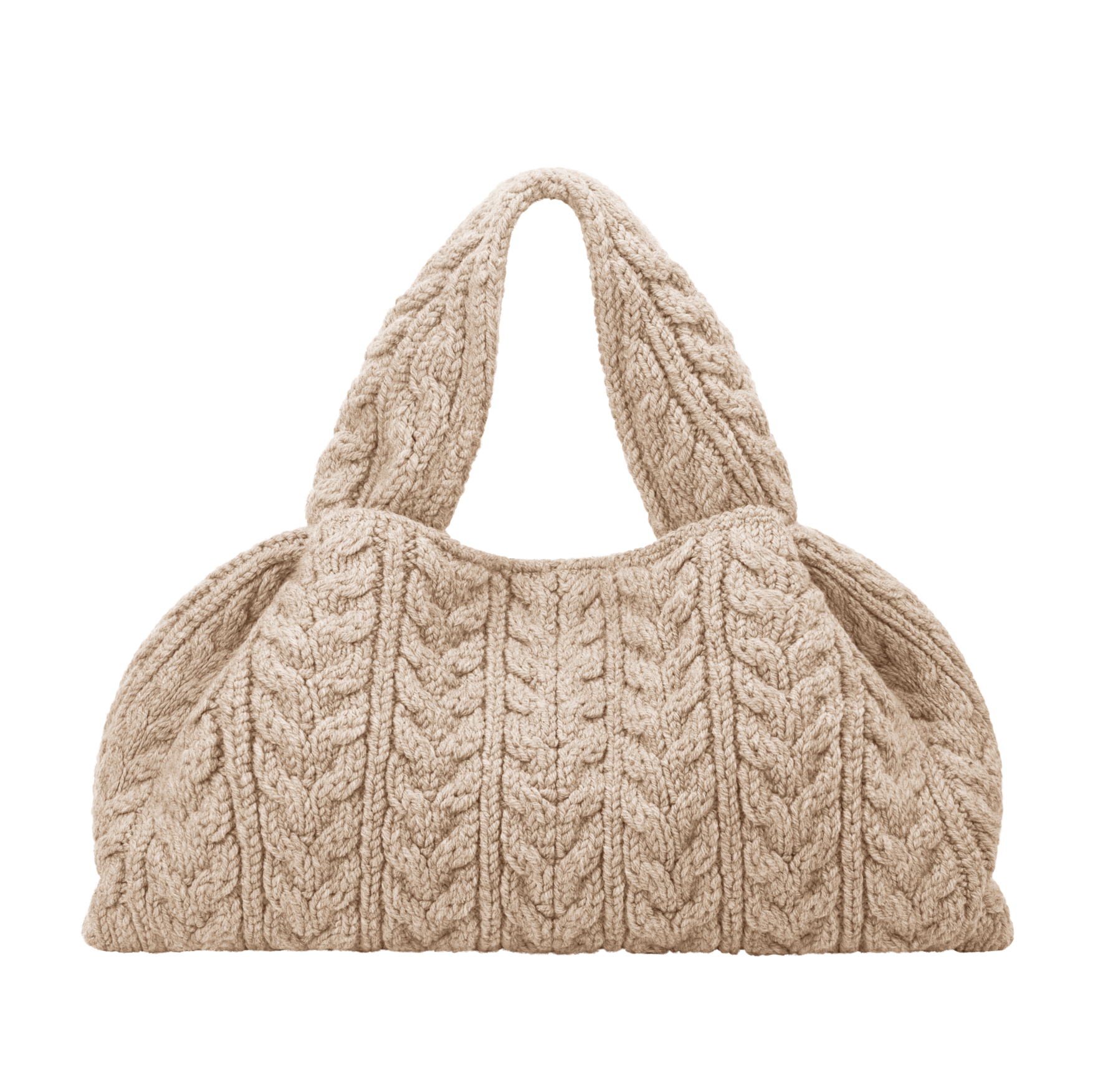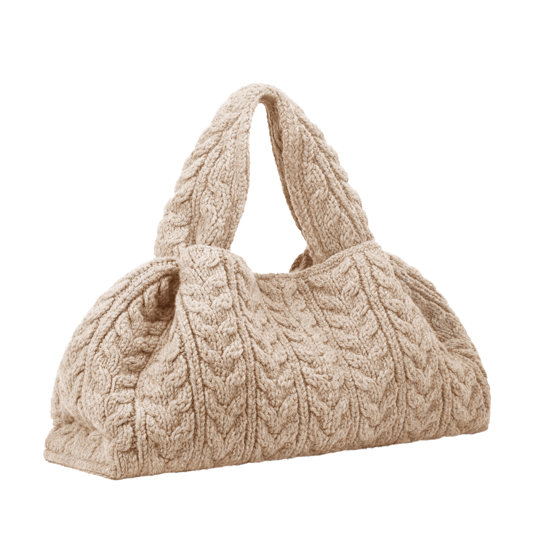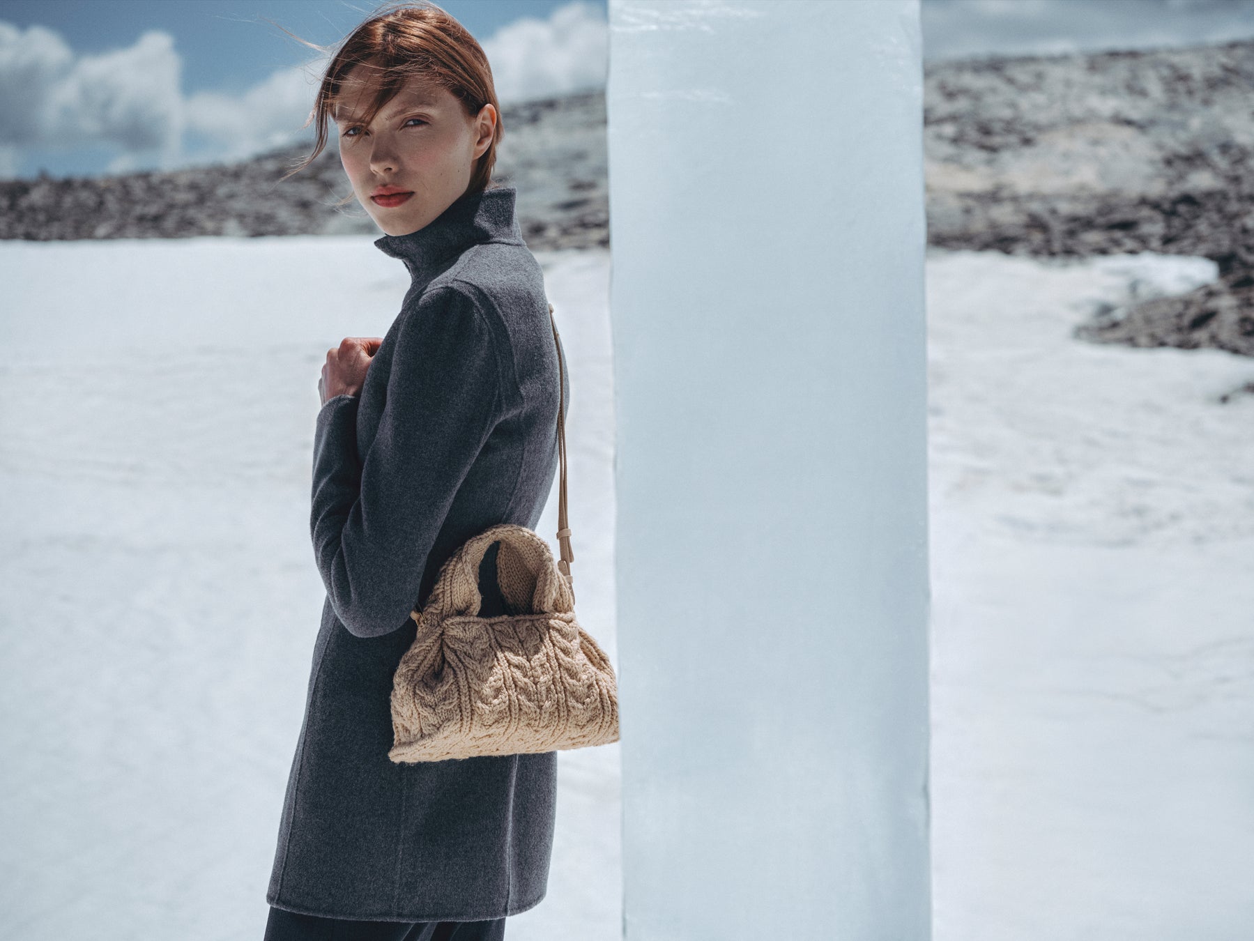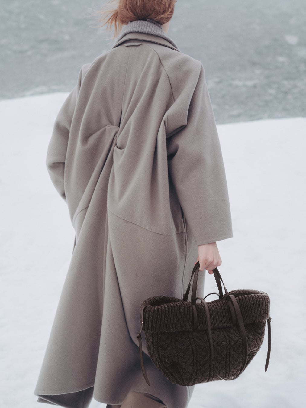 ニット部分には、優れた品質で知られるウルグアイの草原産のメリノウールを100%使用し、イタリアで丁寧に編み上げました。型に合わせてパーツをカットして縫い合わせるのではなく、フルファッション(成型編み)製法によりバッグの型に合わせて直接編み上げられ、多くの手作業工程を経て仕上げられています。これにより、レザーバッグのフォルムを忠実に再現しました。