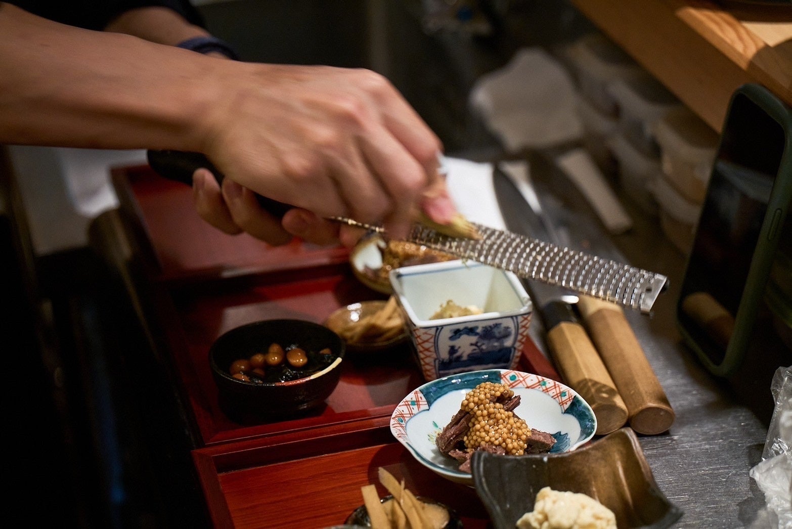 誰もが楽しめて、多様な人と出逢えるボーダーレスな呑み場、「角打ち」。八重洲夜市では、気軽に楽しめる角打ちスタイルの飲食エリアが登場します。ドリンクは、お茶割りのパイオニアとして話題の人気店「茶割」が、期間限定で「茶割 BAR TRUCK」をオープン。フードは、感度の高い食通たちに絶大な支持を得た「Salmon & Trout」や「八雲茶寮」を経て、現在はフリーのシェフとして活躍の中村拓登氏率いる「中むら食堂」がメイン店舗を担当。八重洲夜市をイメージした限定メニューもご用意いたします。