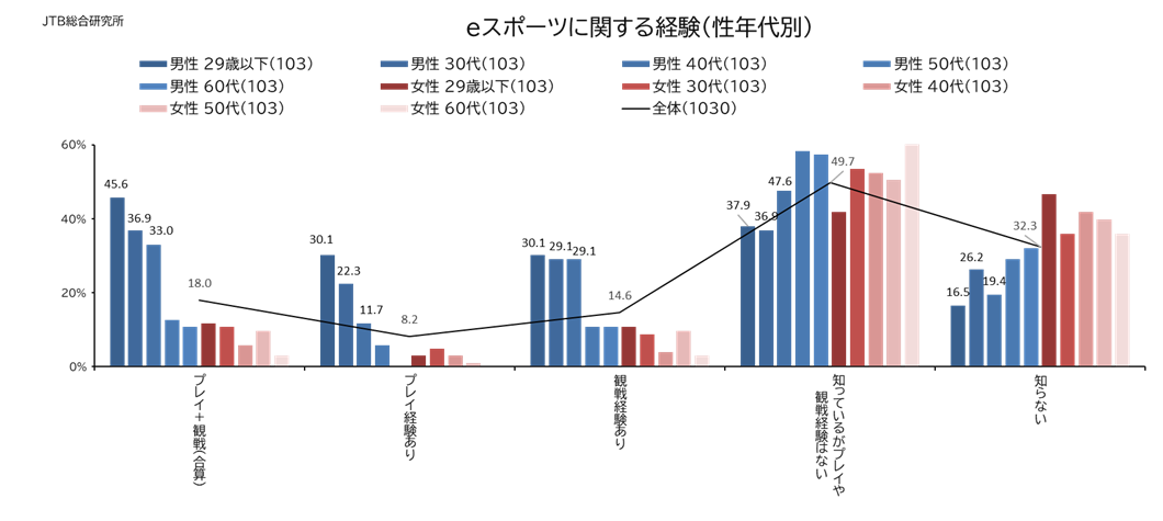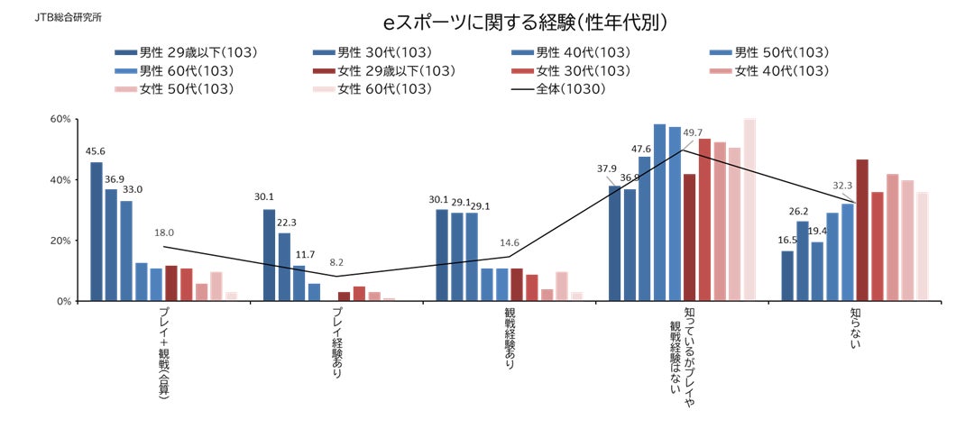 4.eスポーツをプレイ・観戦体験したことがある人は過去最多となり、男性29歳以下では約半数の45.6%。男性40代の観戦経験者増加も顕著