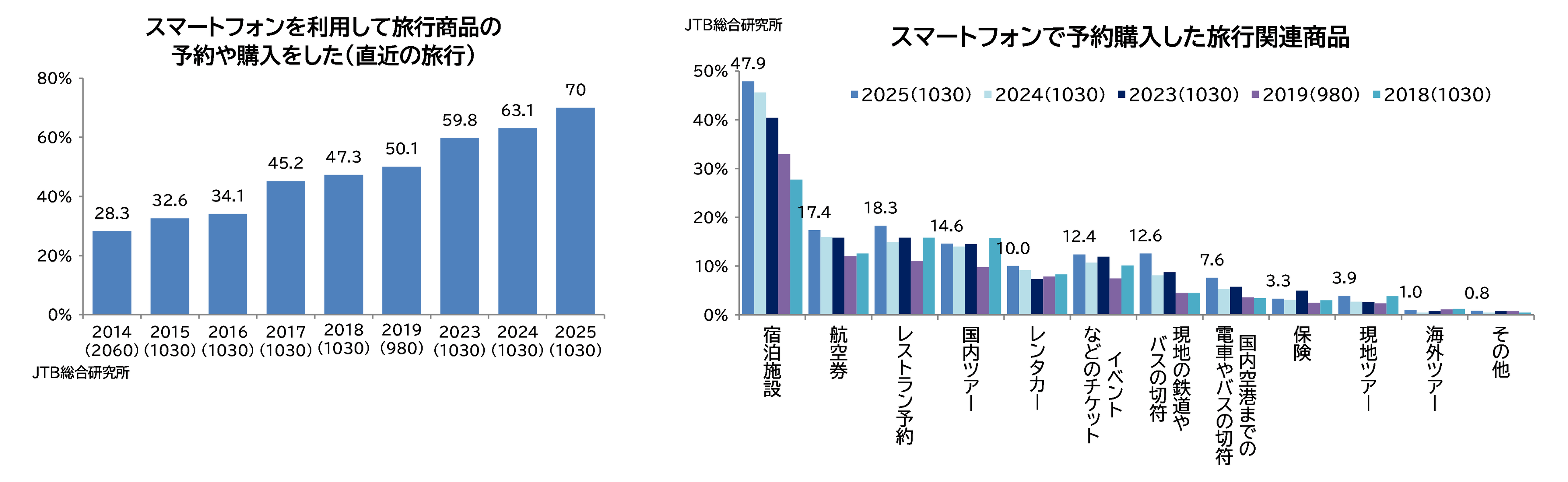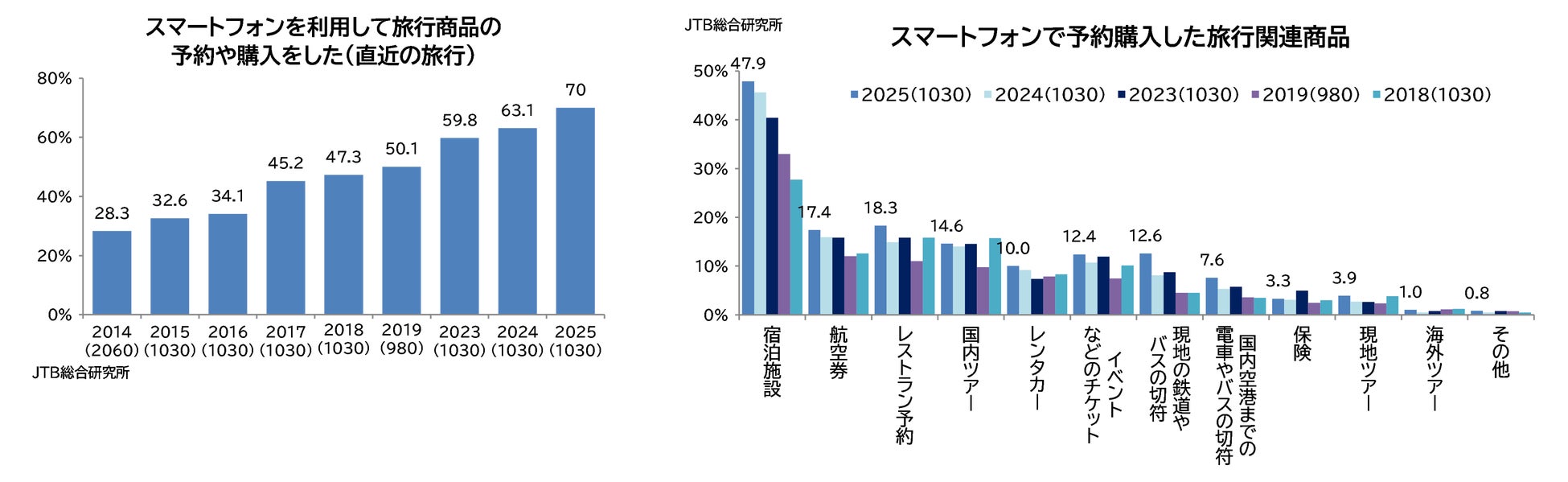 (株)JTB総合研究所は、「スマートフォンの利用と旅行消費に関する調査(2025)」を実施しました。本調査は2013年から調査を開始し、本調査で10回目となります。