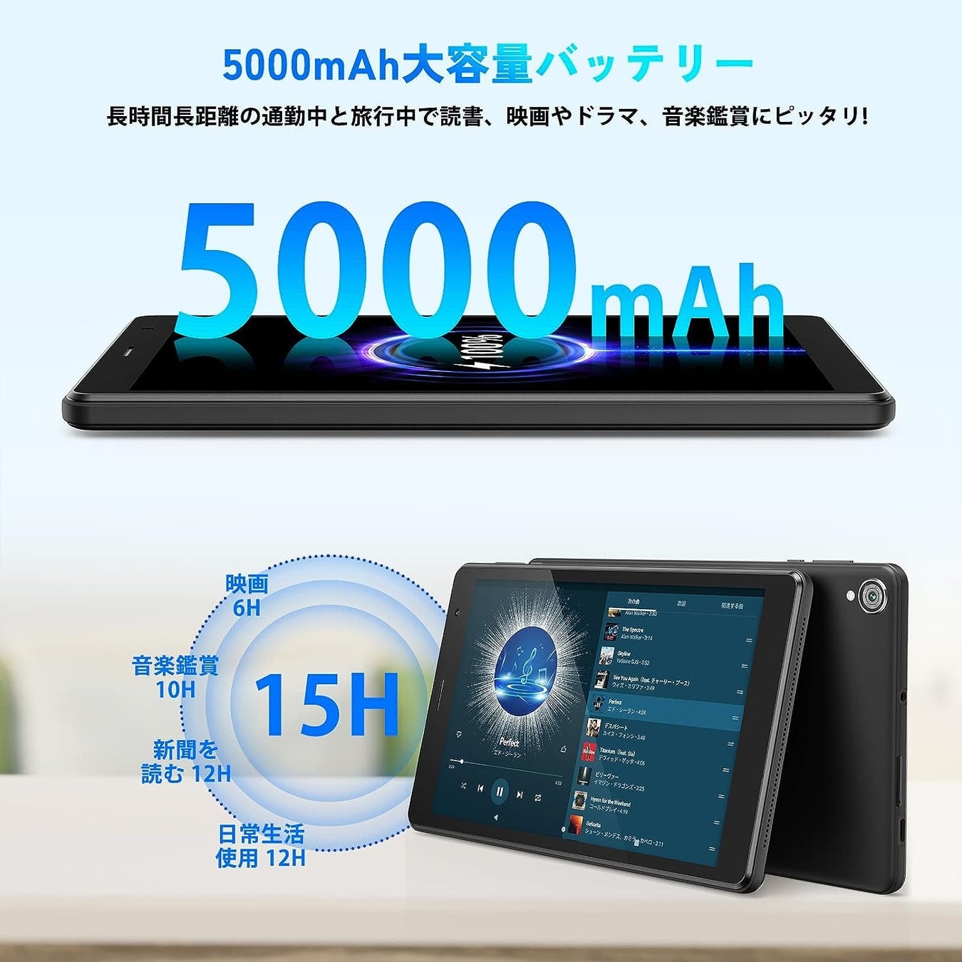 5000mAh大容量バッテリー