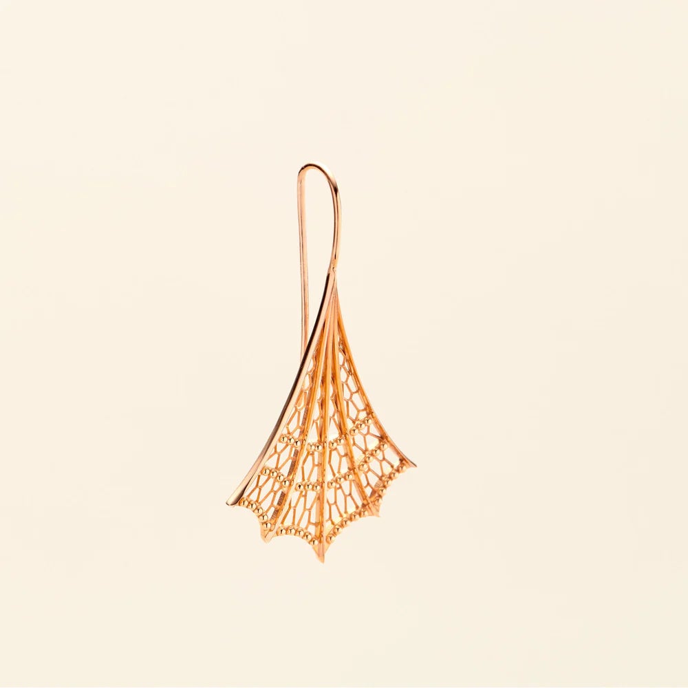19世紀末から20世紀初頭に活躍したバレエダンサー、クレオ・ド・メロード。その優雅さと神秘的な魅力を反映した「クレオ」コレクションは、彼女の舞台での役柄やアールヌーヴォーの美学を取り入れたデザインが特徴です。ピンクゴールドを使用し、こうもりの翼を思わせる優美な曲線が印象的なデザインです。