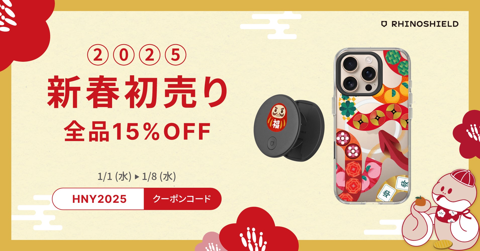 台湾発のスマホアクセサリーブランド「RHINOSHIELD(ライノシールド)」は、スマホケースやAirPodsケースなどブランド内のスマホアクセサリーが全品15%OFFになる初売りセールを2025年1月1日(水)から1月8日(水)まで公式サイトにて開催いたします。新年にふさわしい2025年の干支「巳」をモチーフにした新デザイン「開運ヘビコレクション」のスマホケースやこの冬新登場の最軽量※「2in1 Ultra ネックストラップ」も対象です。