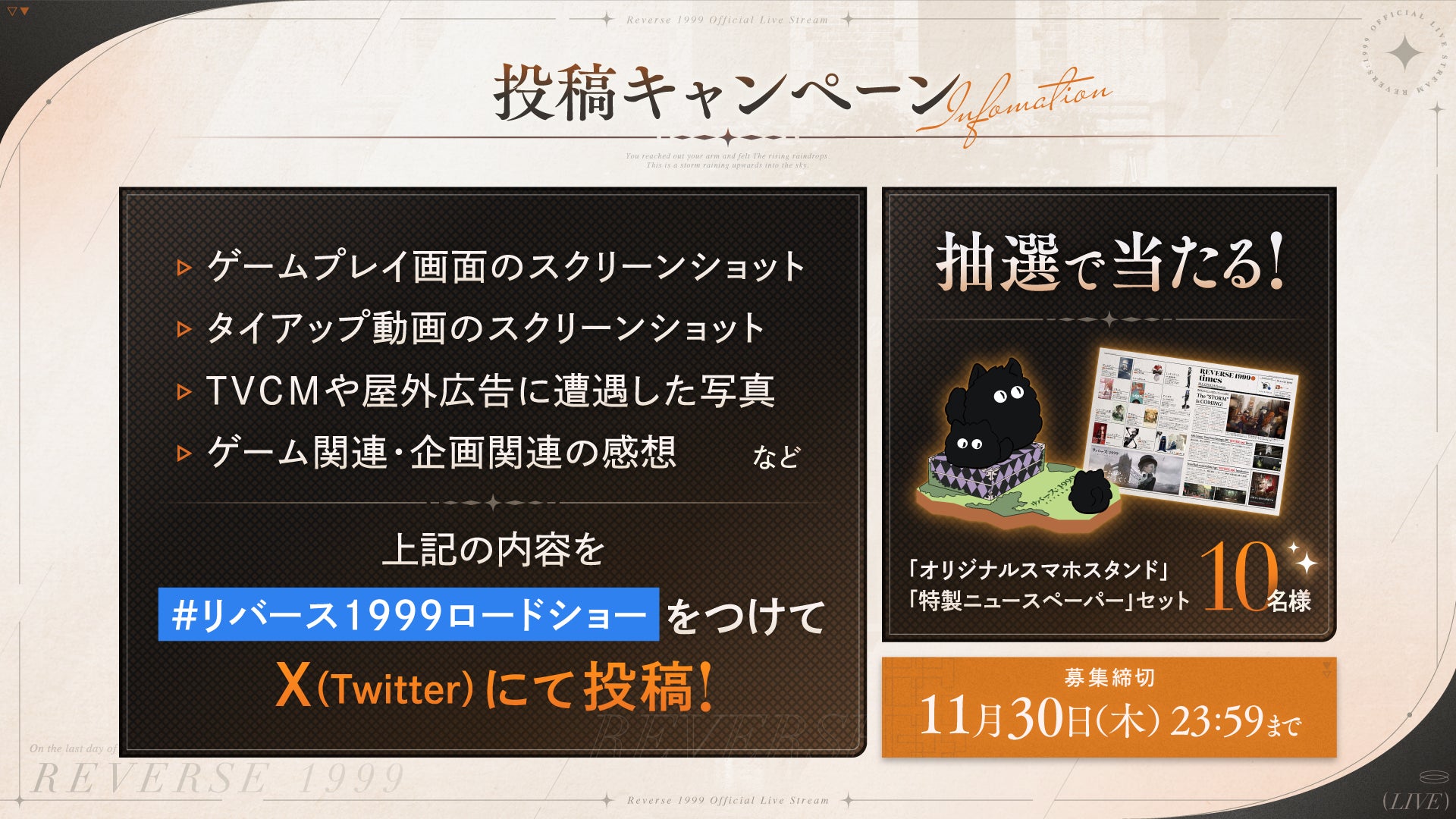また、秋葉原・池袋・新宿・大阪・渋谷・山手線などにて『リバース:1999』の広告を順次掲出していきます。TVCMとの連動など、タイアップキャンペーンも多数展開中ですので、詳細は公式Xをご確認ください。