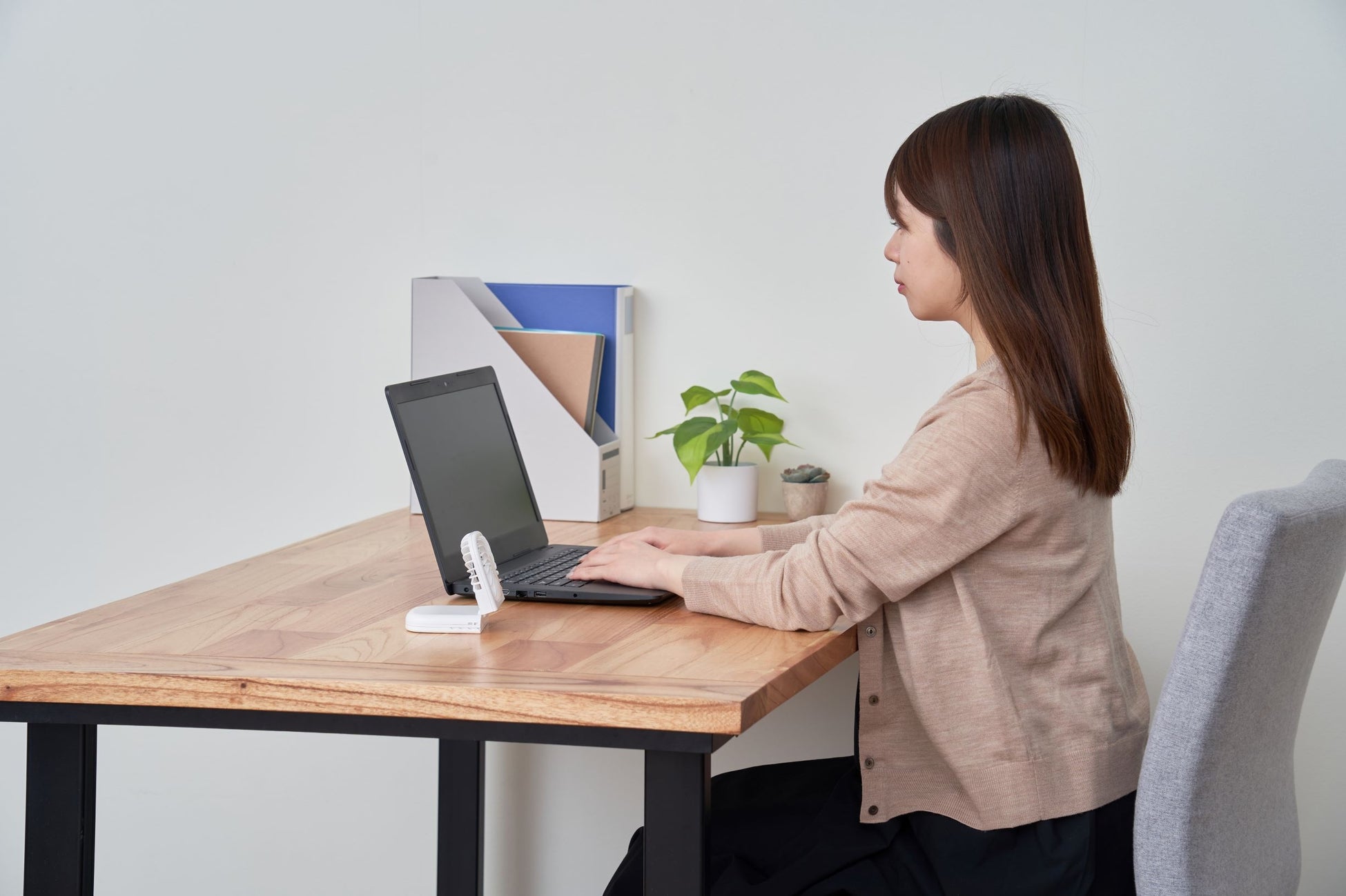 3段階の強さの調整が出来るので、お好みの強さでお使いいただけます。まっすぐ強い風なので、汗が気になるおでこや首元をピンポイントで涼むこともできます。