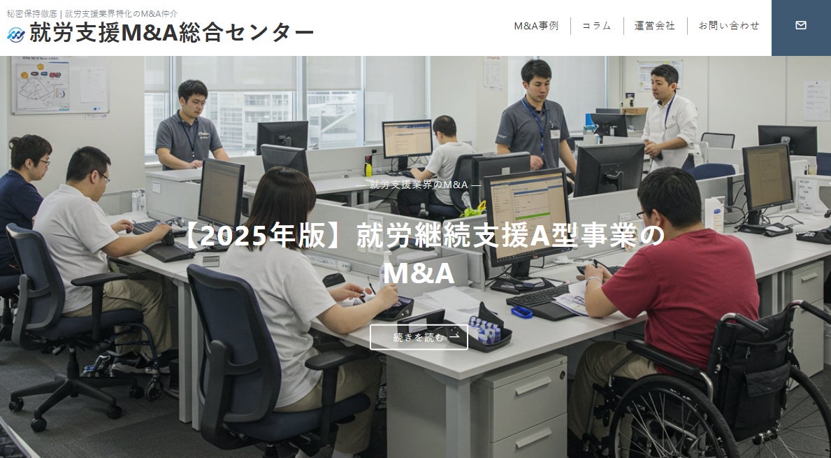 M&A仲介会社の株式会社M&A Do(所在地:東京都港区虎ノ門4-1-28 虎ノ門タワーズオフィス19階、代表取締役:濱田 啓揮)は、このたび国内で初となる就労支援業界に特化した「就労支援M&A総合センター」を開設いたしました。本センターでは、就労支援事業の譲渡企業(売り手企業)からは一切の仲介手数料をいただかない“完全無料”のサポートを提供し、M&Aによる事業承継・事業再編を強力に支援してまいります。