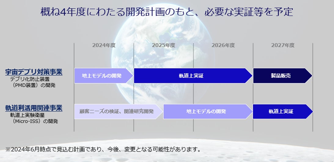 概ね4年間での開発を計画しており,今年度(2024年度)については,①宇宙デブリ対策事業は,