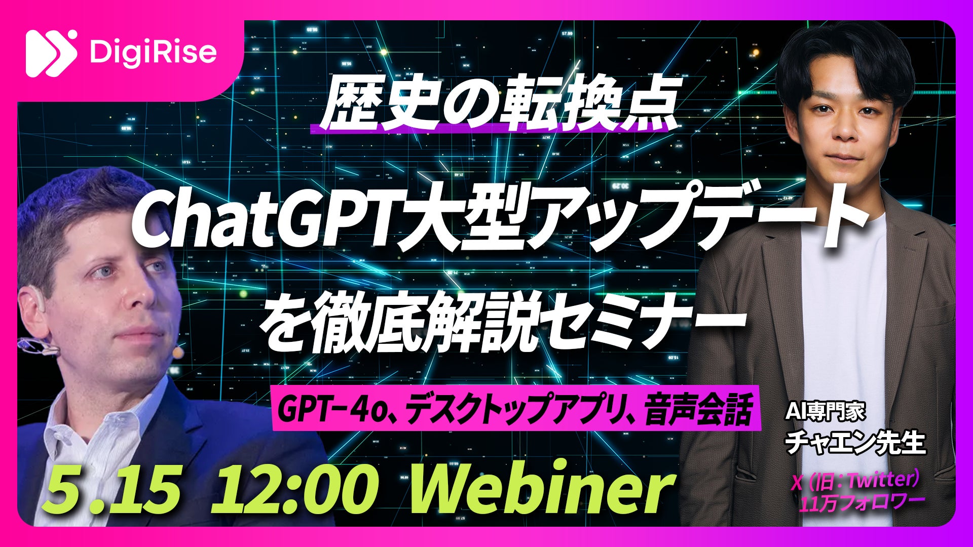 【2024年5月15日(水) 12:00~】株式会社デジライズがChatGPTの大型アップデートを徹底解説する緊急オンラインセミナーを開催。