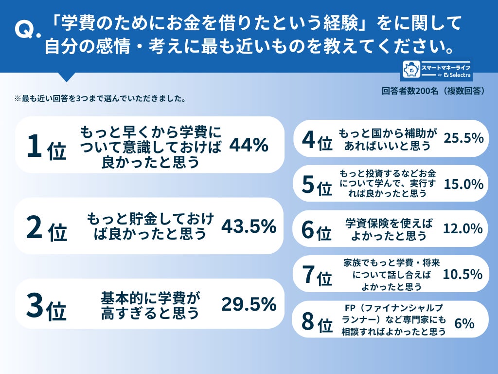 子どもの学費のためにお金を借りた人が感じたこと・思ったことトップ8