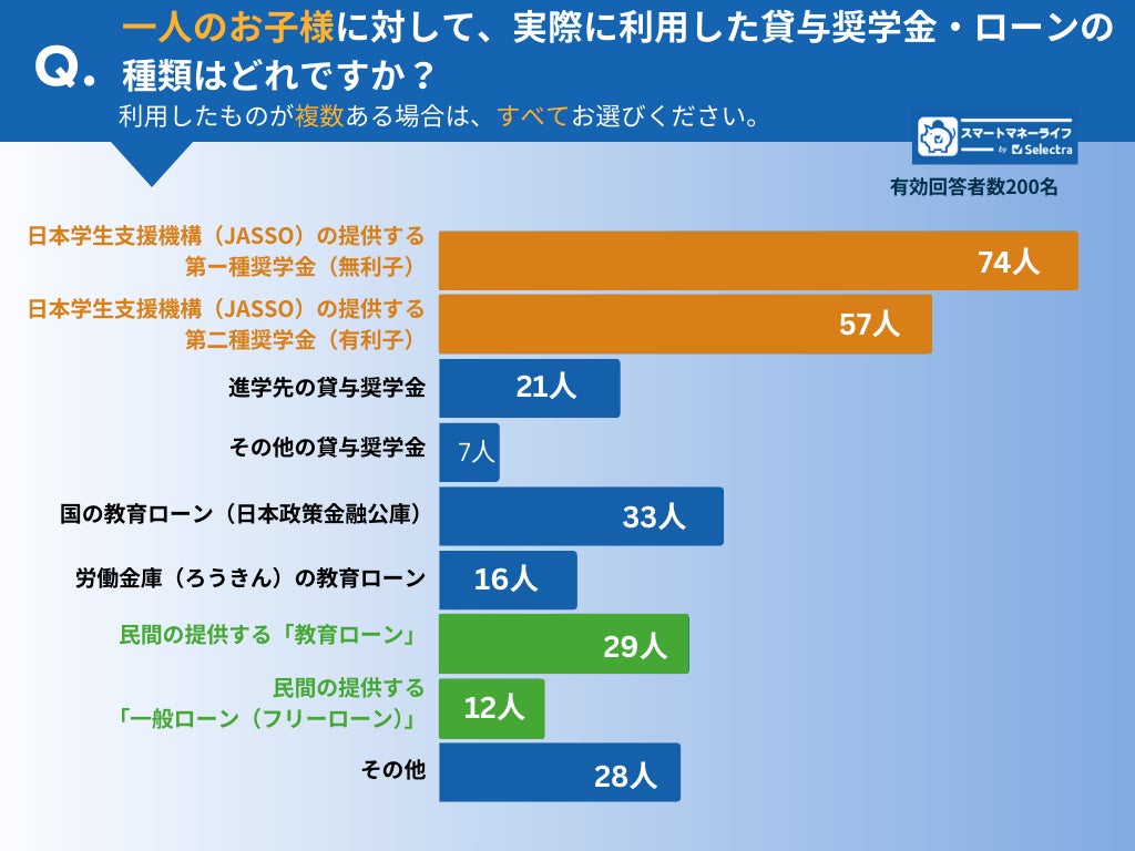 セレクトラ・ジャパン株式会社(東京都渋谷区、代表取締役:グザビエ・ピノン)の運営するオンラインメディア、スマートマネーライフでは、過去5年間に子供の学費のために奨学金・ローンを含め「お金を借りたこと」のある200名を対象に独自にアンケート調査を実施しました。