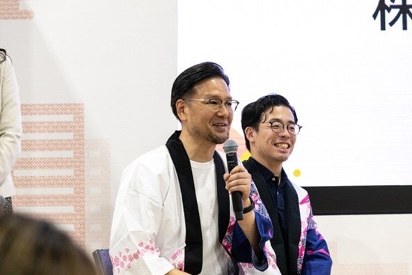 村上さん・皆川さんはプロジェクトの概要を説明し、大和中学校の生徒の方は「もち粉を使った『ラッキークッキー』と、粘土としても遊べる『こめんど』の2商品の販売とワークショップを行いました。地元の方が多く購入することがわかったが、他の地域の方にどのようにアピールするかが課題と感じました。今後、この経験を、後輩たちに受け継いでいきたいと思っています。」と話し、プロジェクトへの想いと今後の展望を語りました。