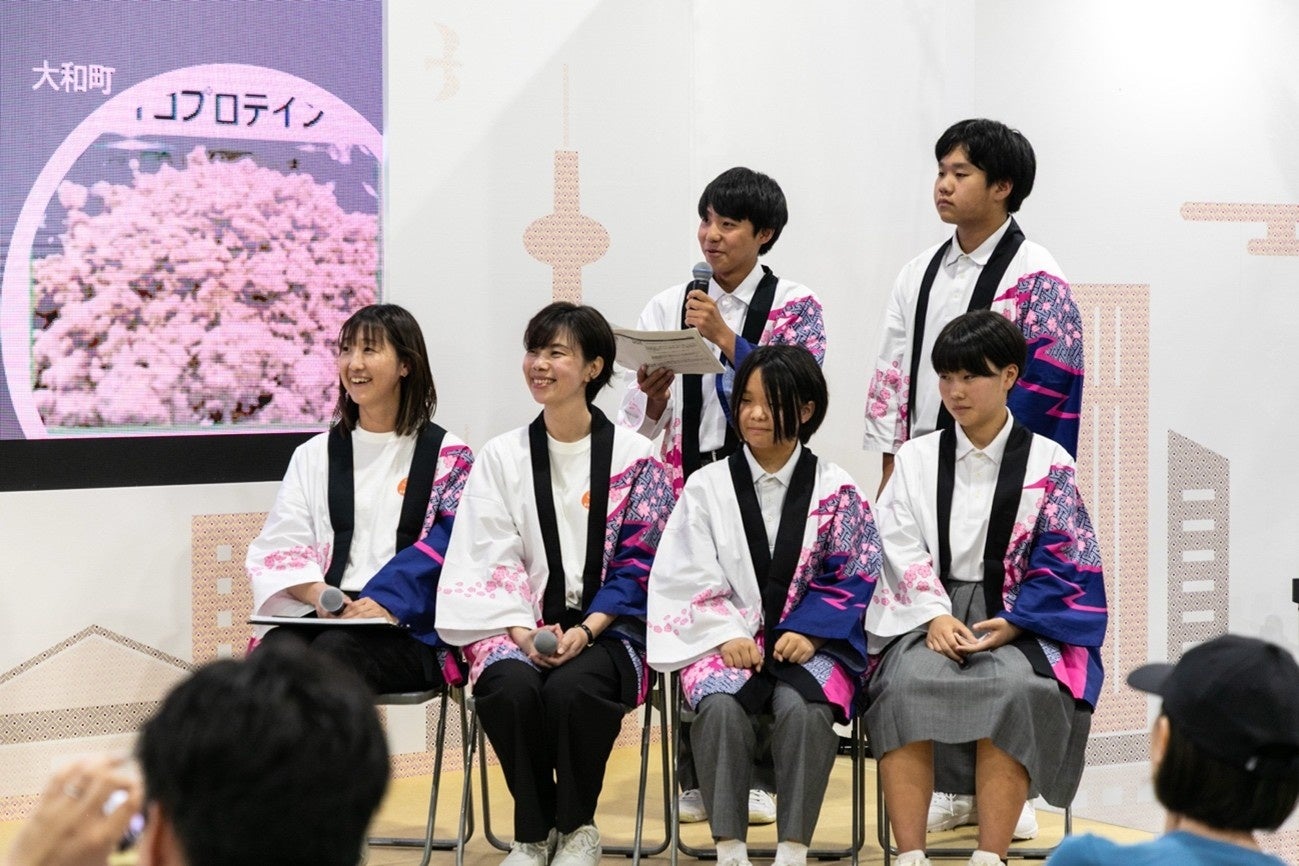 本トークショーの冒頭に、地域法人おせっかいさん代表の村上朋子さん・副代表の皆川夏織さんと、共同開発を行った大和中学校の生徒の皆さんが米粉を使った商品開発について説明しました。