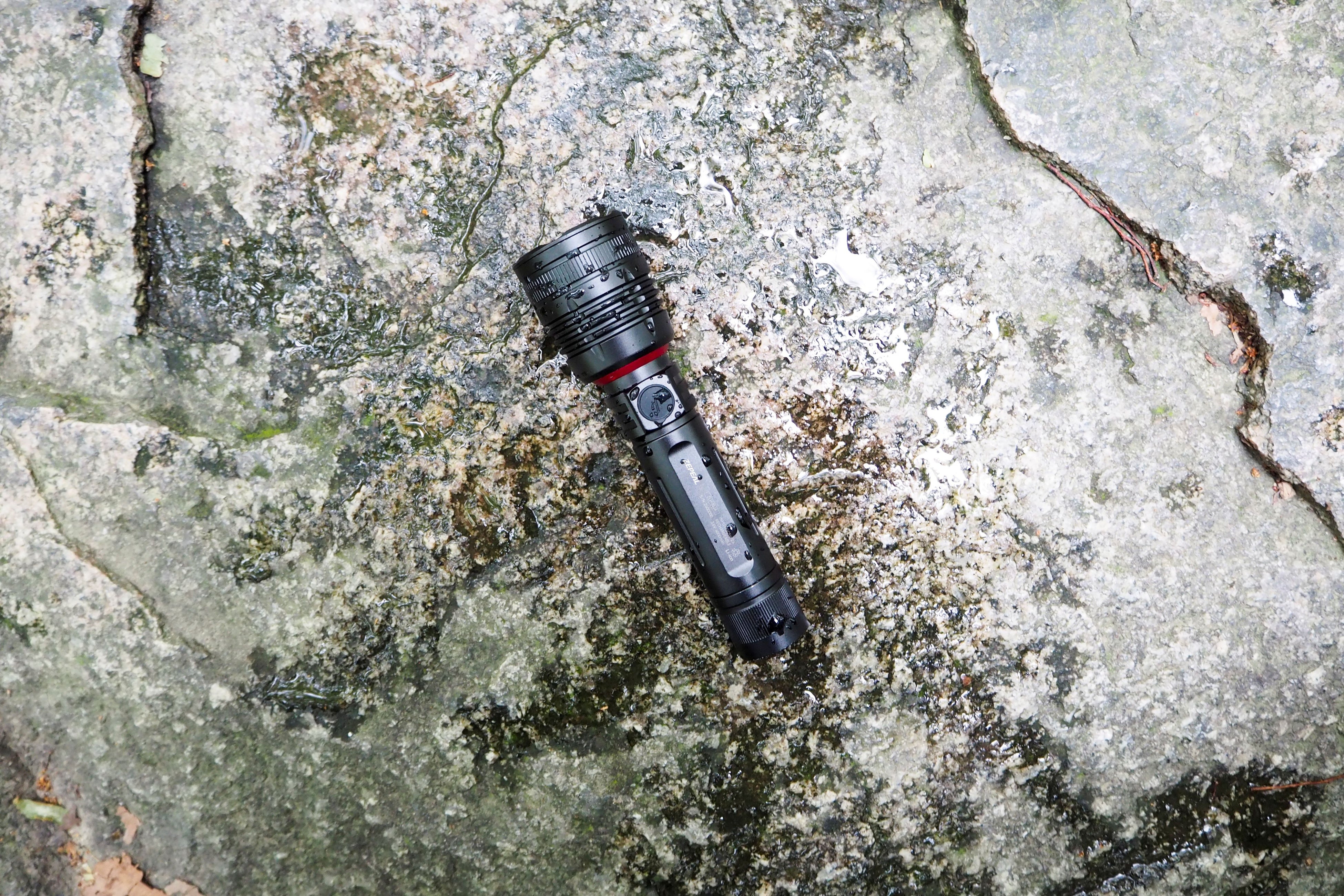 普段使いの懐中電灯として最適な形状。スライドフォーカス調節部を伸縮させることで、照射範囲を無段階調節できます。