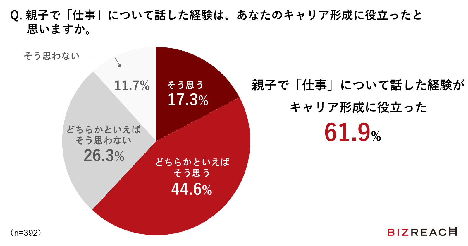 ■61.9%が、子供の頃に親子で「仕事」について話した経験が、自身のキャリア形成に役立ったと回答