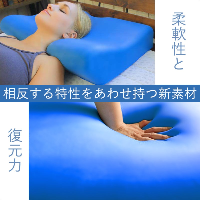 『BlueBlood』は柔軟性と復元力を併せ持つ、もちもちとした弾力が特徴のジェルとスーパーソフトウレタンを融合したハイブリッドGEL素材で、シリーズ累計75万個を突破しました。頸椎安定wayピローAtman(アートマン)はBlueBloodの質感はそのままに、オーバーハング構造を取り入れた頸椎安定に特化した形状の枕です。