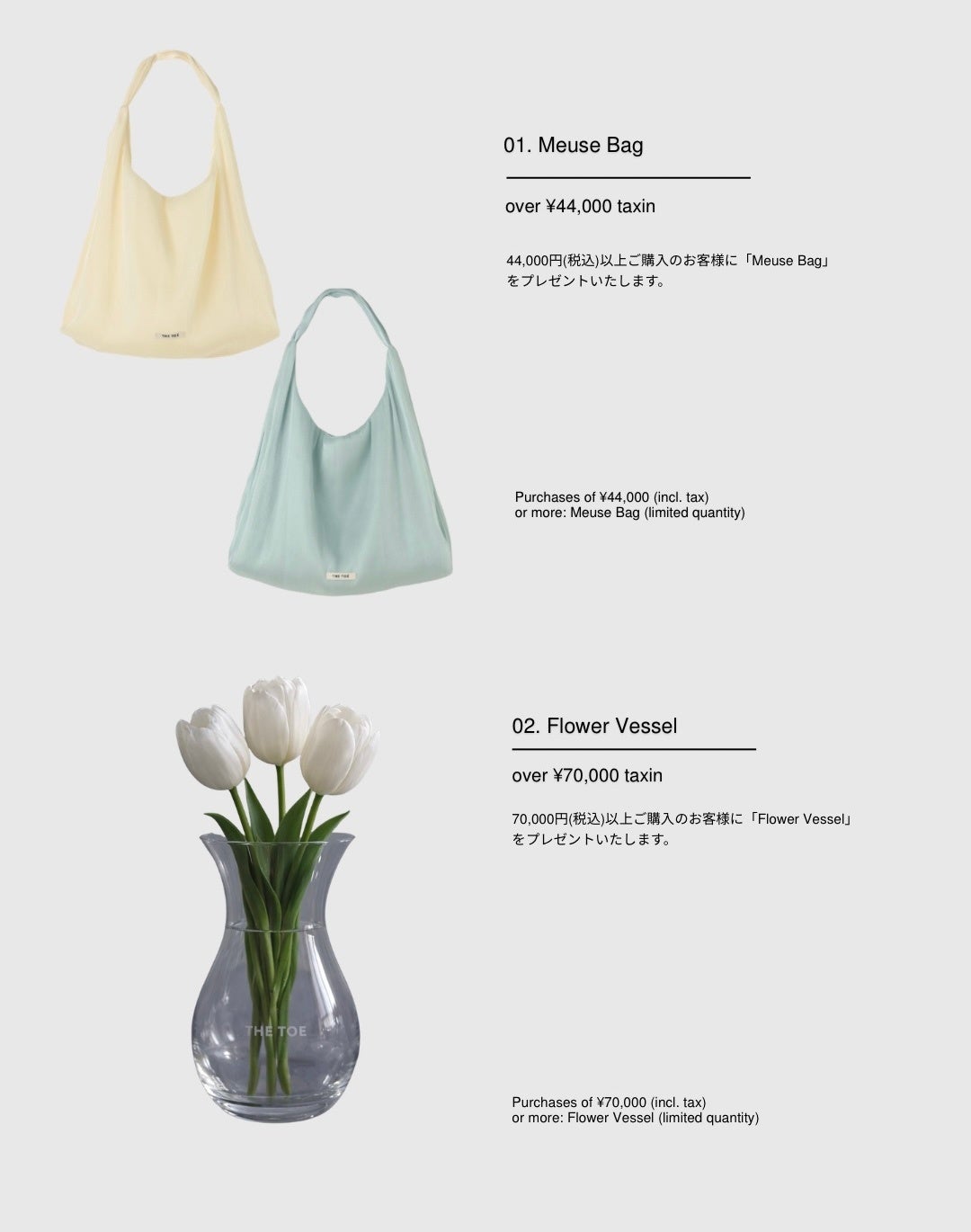 70,000円(税込)以上お買い上げいただいたお客様には、2つのノベルティをお渡しいたします。