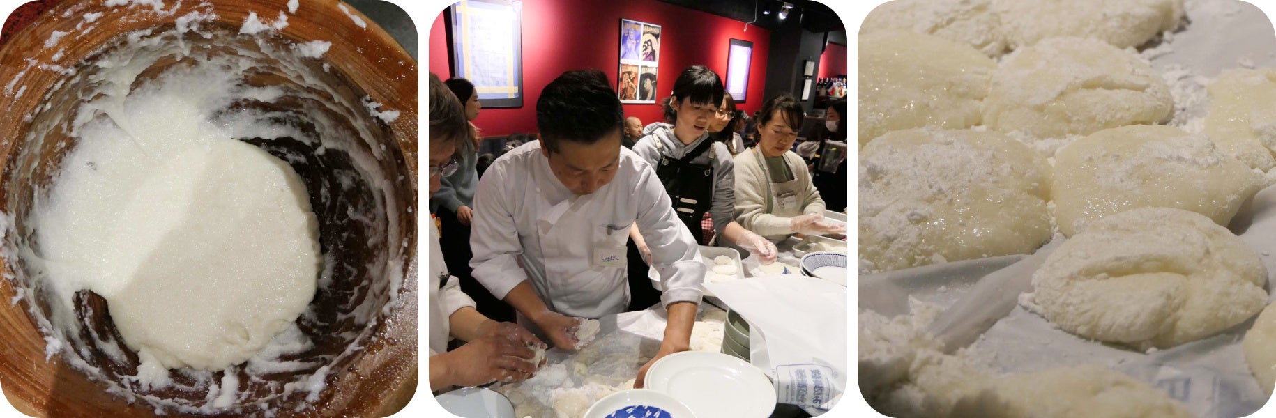 もちつきの前に田中シェフより一芸披露。こども達も喜んでくれました。