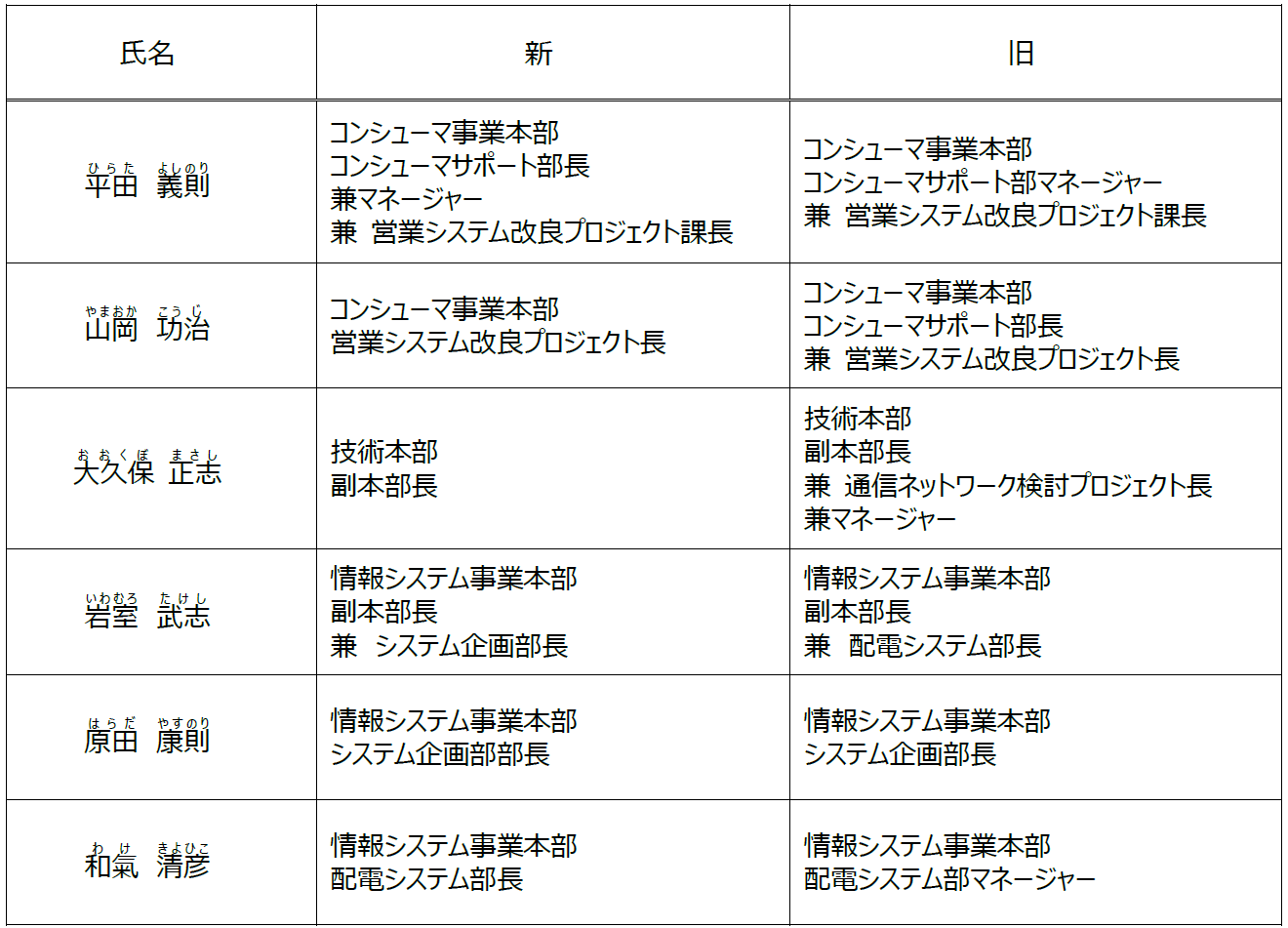 人事異動および組織見直しについて