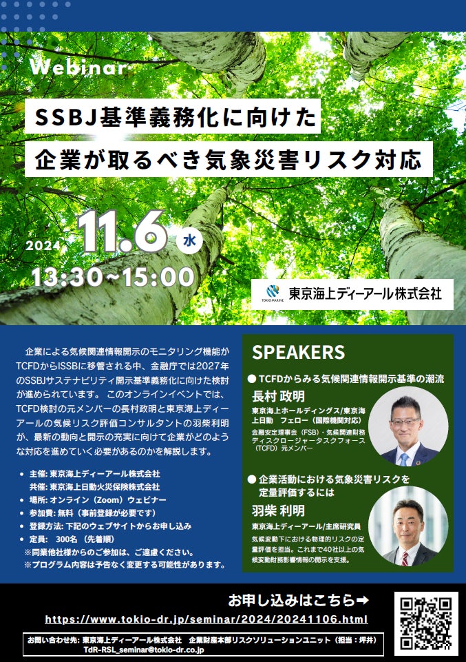 【11/6(水)開催 】オンラインセミナー「SSBJ基準義務化に向けた企業が取るべき気象災害リスク対応」