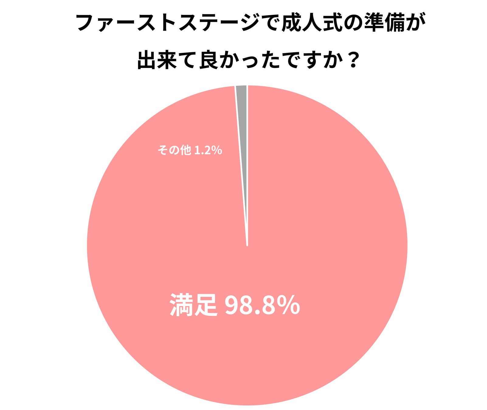 成人式準備全体の満足度:98.8%が「満足」と回答。