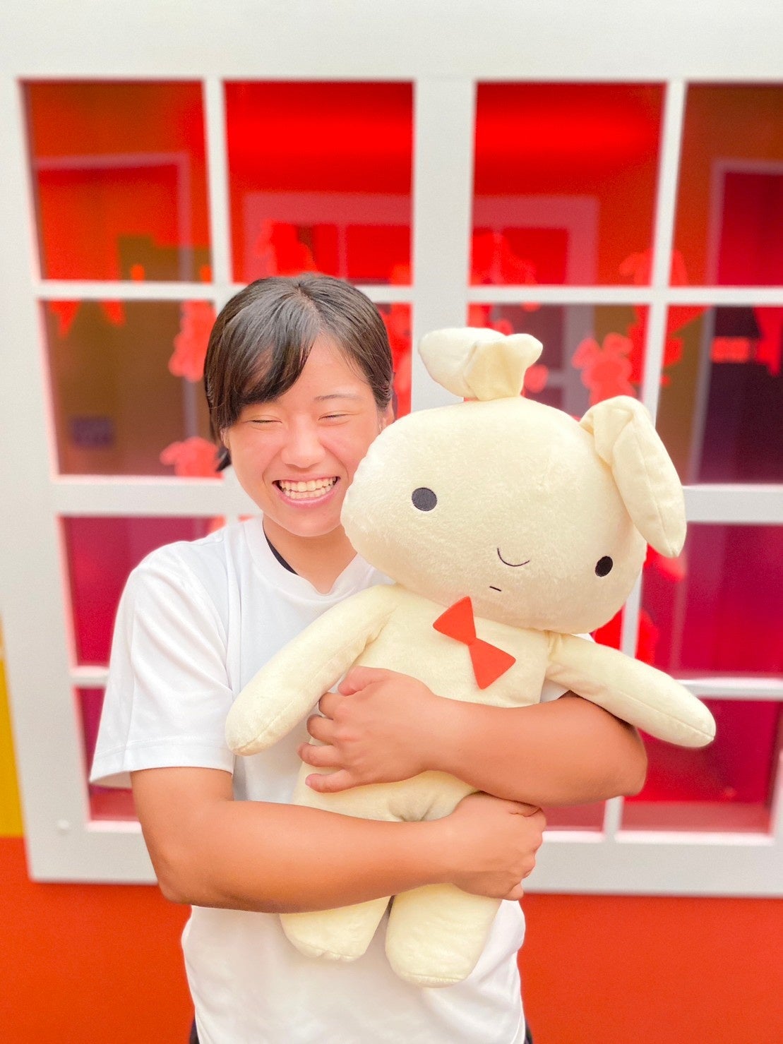 ニジゲンノモリの人気アトラクション「クレヨンしんちゃんアドベンチャーパーク」では、アニメでもおなじみの最恐アイテム”ネネちゃんうさぎ”をキッズエリア「のんびりのはら」内、「オラのビックリ!ドッキリ!おもしろホラーハウスだゾ!」にて 9 月2日(土)~11 月 30 日(木)の期間限定で展示中です。作中で、ネネちゃんが愛用し、時には全ての怒りを受け止めるウサギのぬいぐるみが登場!じっと動かない 可愛いウサギのぬいぐるみ。優しく抱きしめるも、ネネちゃんとうさぎのおなじみのシーンを再現するもあなた次第!