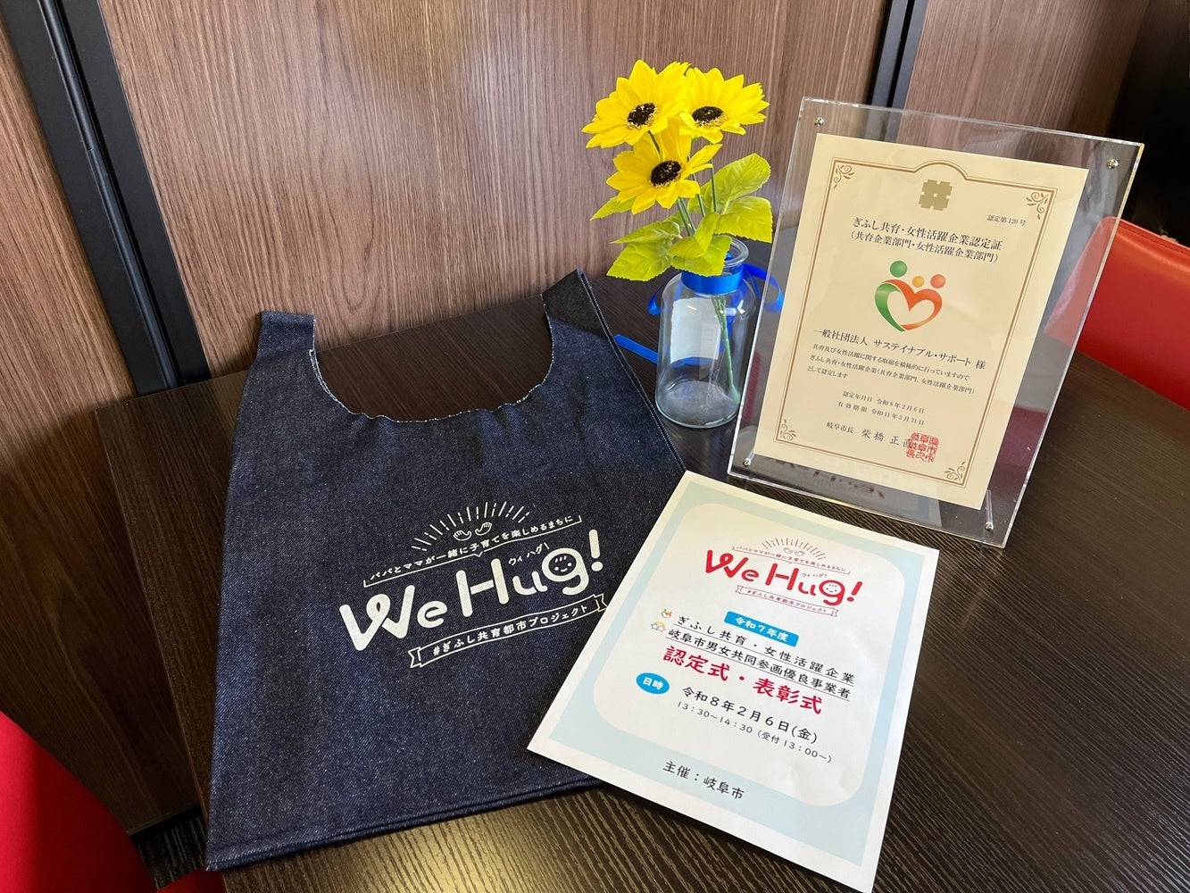 一般社団法人サステイナブル・サポート(所在地:岐阜県岐阜市、代表理事:後藤千絵)は、令和8年2月6日、3年ごとに更新される認定制度「ぎふし共育・女性活躍企業」において、更新認定を受けました。