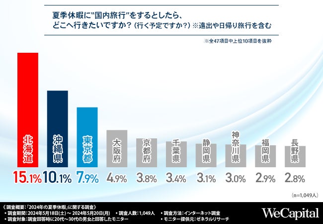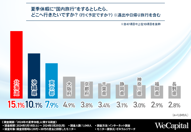 そこで、夏季休暇に国内旅行へ行くなら…どこへ行きたいですか?と旅行先について質問しました。