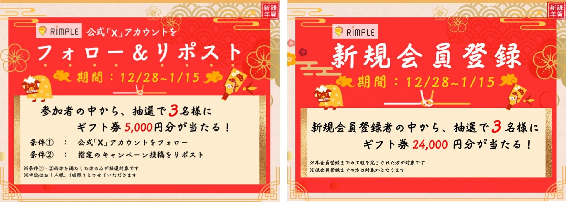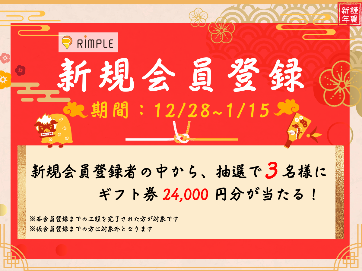 ② Rimpleへの新規会員登録でギフト券24,000円分が当たるチャンス!