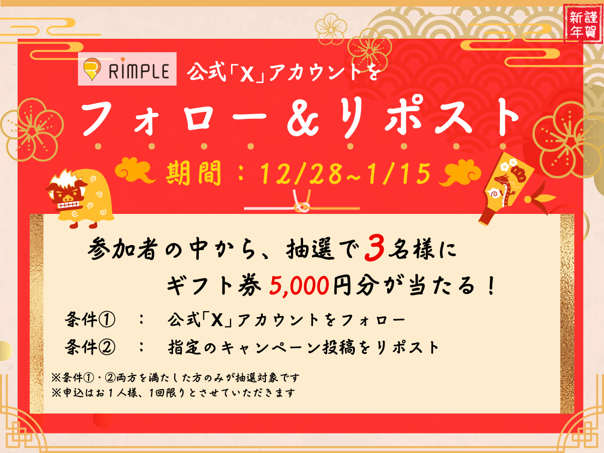 応募方法:①Rimple(@Rimple_pa)のX(旧Twitter)アカウントをフォロー