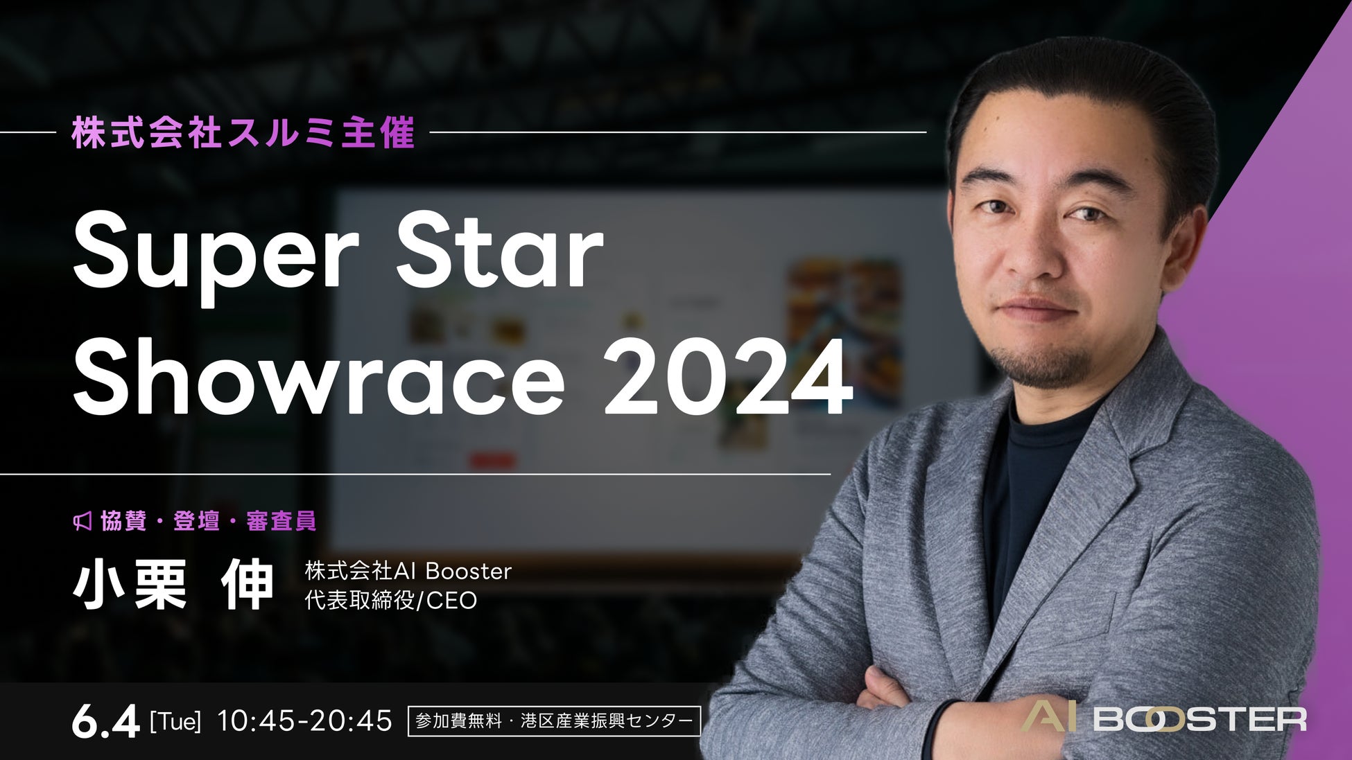 株式会社AI Boosterは、業界初のAIタレントである「AI am MAAYA」といった、生成AIを活用したエンタメ向けサービスを提供するAIスタートアップ企業です。当社のCEOを務める小栗が、このたび「Super Star Showrace”(SSS/トリプルエス)2024」の審査員に就任いたしました。