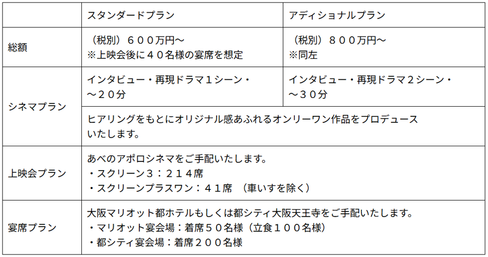 「ワタシネマ」の近鉄グループ版サブブランドとして誕生した新たな商品です。近鉄百貨店の販売ネットワークを活かすとともに、作品完成後にプライベート上映や宴席をご用意し、お客さまの感動と思い出を深めるサービスを近鉄グループよりご提供いたします。