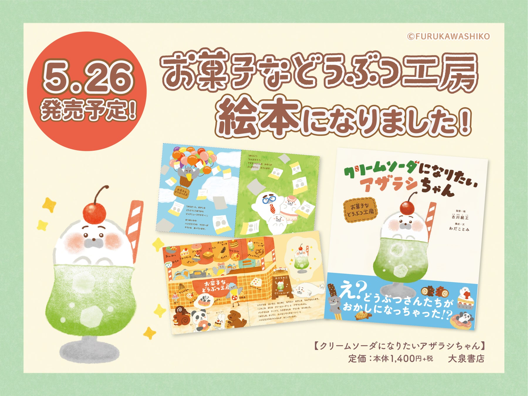 お菓子などうぶつ工房の人気キャラ『アザラシちゃん』を主人公に、お菓子になりたいどうぶつたちが大奮闘するかわいさあふれる絵本も2025年5月26日(月)発売予定です。