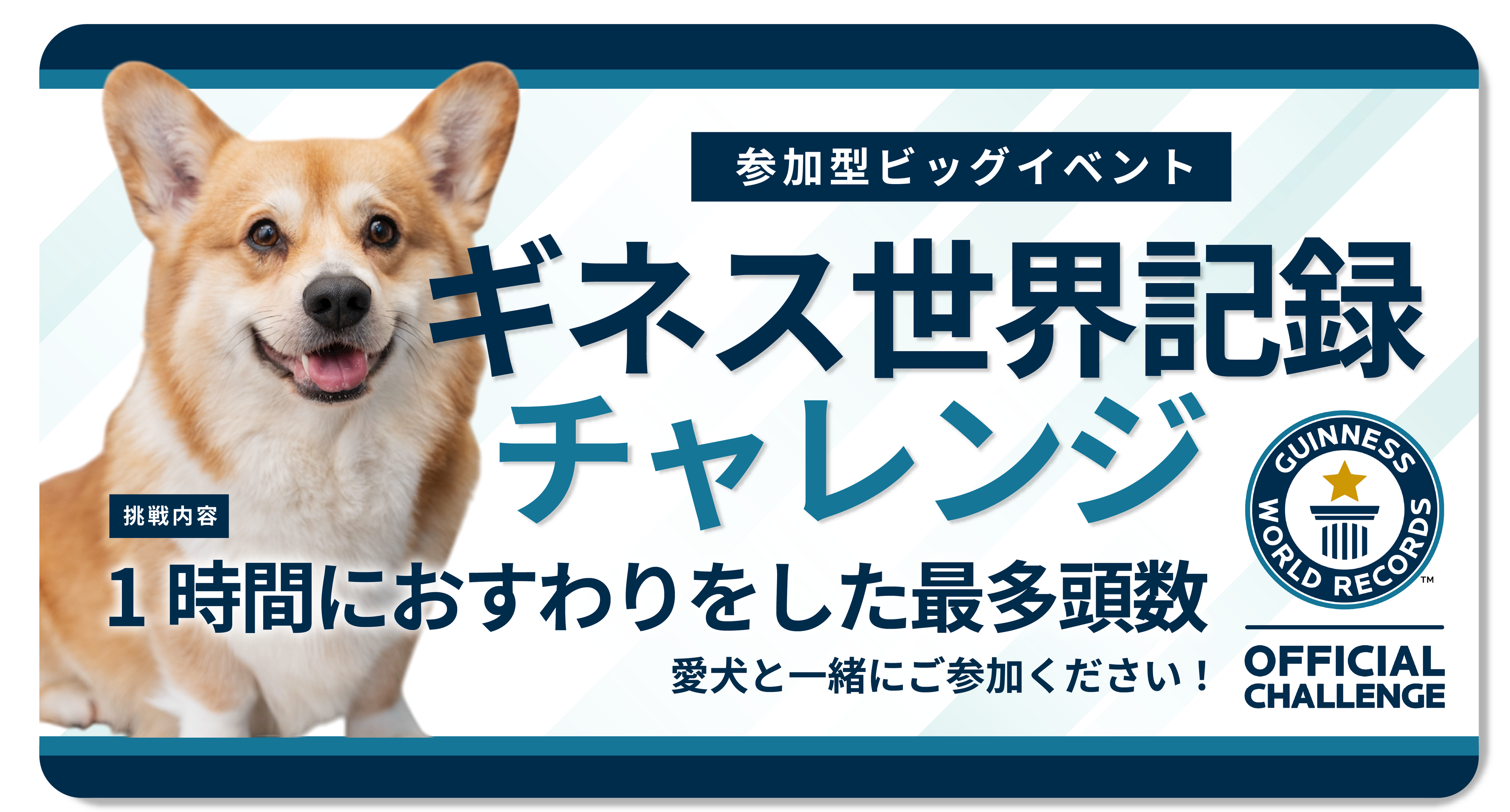 「1時間におすわりをした最多頭数」のギネス世界記録挑戦企画を実施します。来場者の皆様も愛犬とともにご参加いただける特別企画です。皆さまのご参加が、世界記録達成への大きな一歩になります。