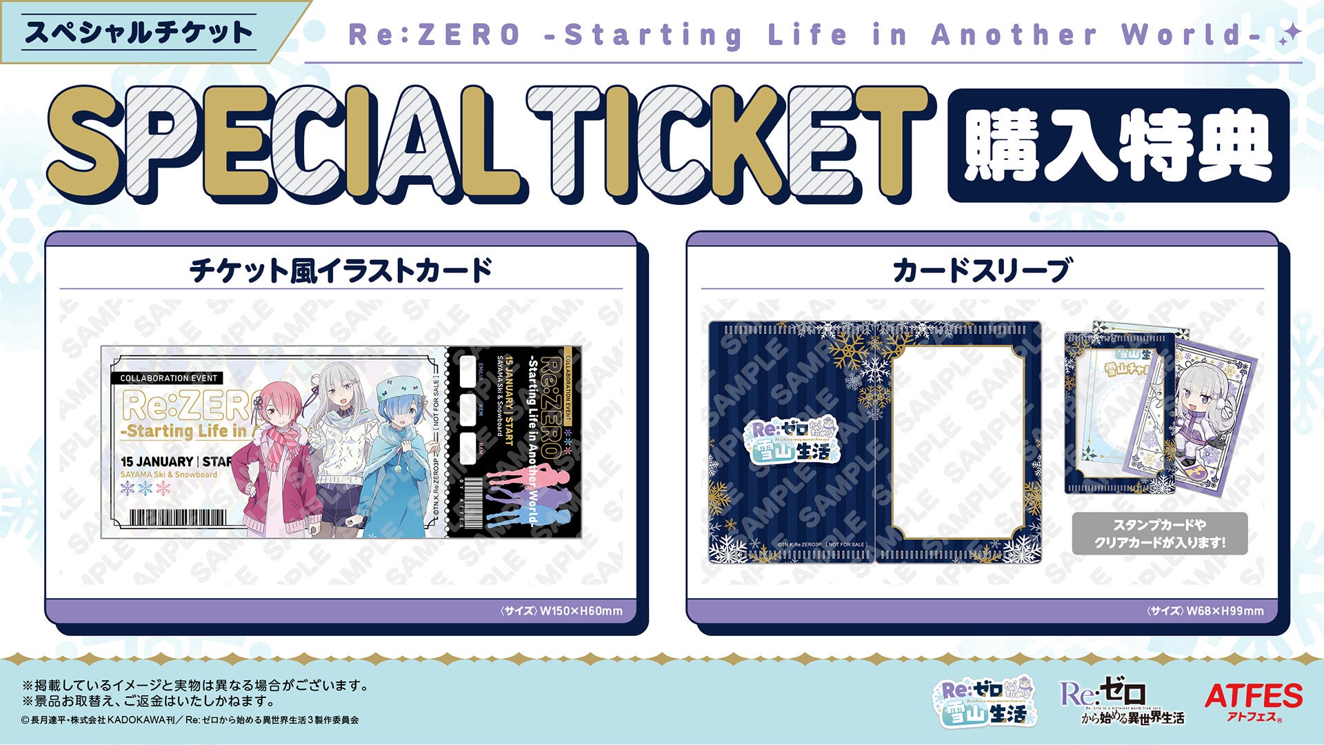 チケット風イラストカード、カードスリーブ、雪山謎解きラリーブックの3種がセットになった「スペシャルチケット」を販売します。