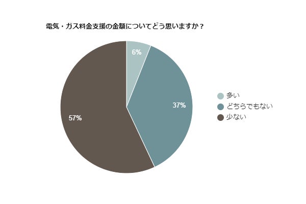 電気・ガス料金の支援金額について、57%の人が「少ない」と回答しました。