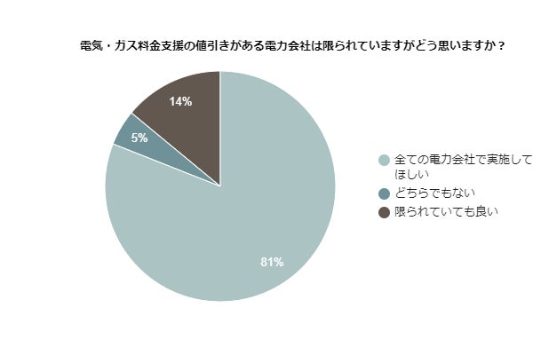 電気・ガス料金の支援策の値引きについて、大多数の人が「全ての電力会社で実施してほしい」と考えています。