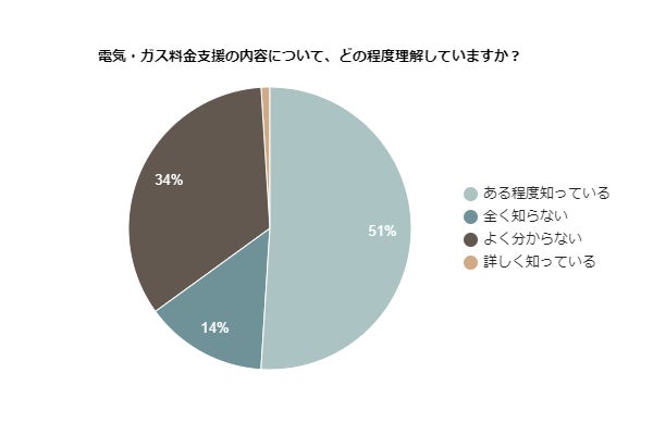 電気・ガス料金の支援内容について、51%の人が「ある程度知っている」と回答しました。