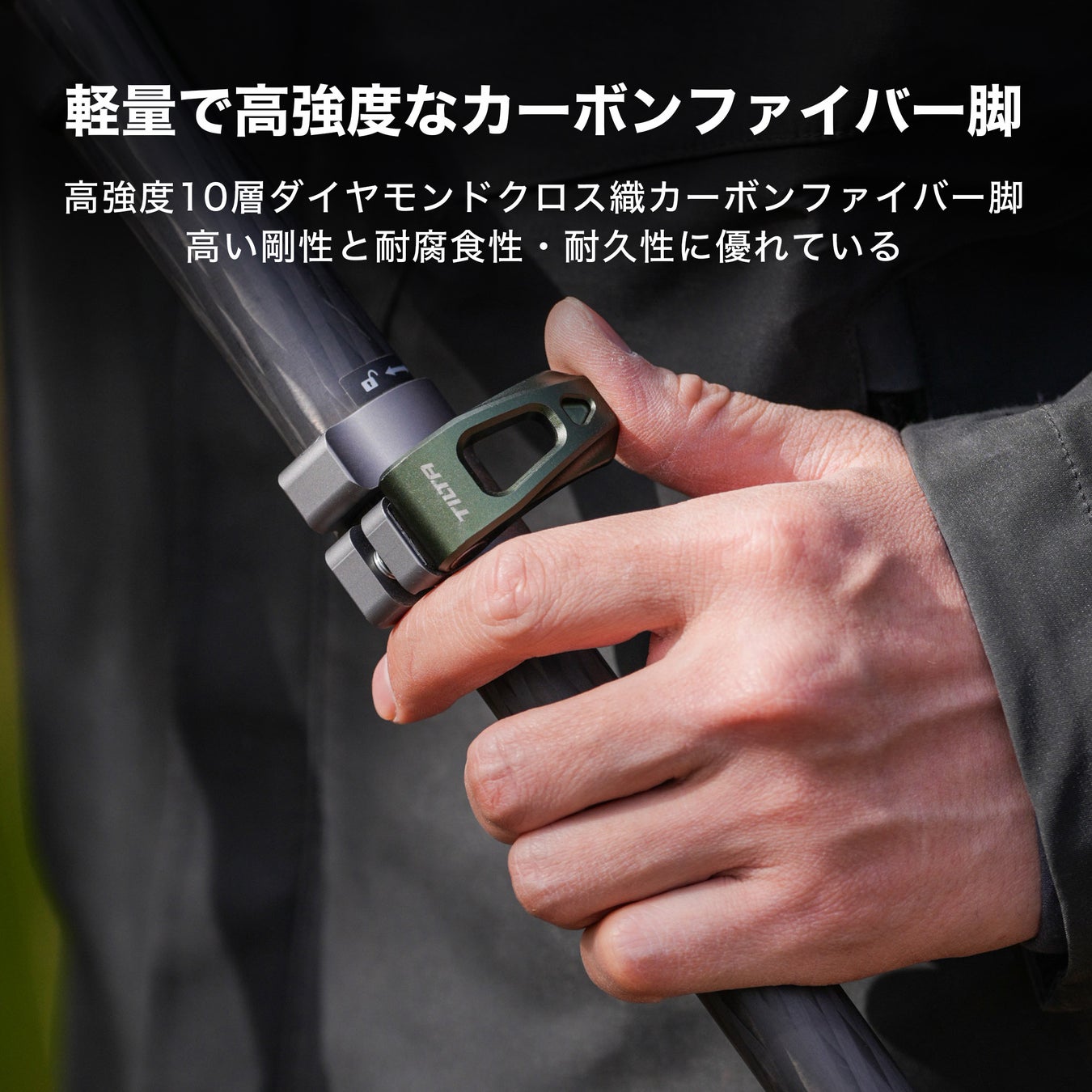 高強度10層ダイヤモンドクロス織カーボンファイバーを採用し、軽量でありながら高い剛性と安定性を提供します。また、ゴム足と金属スパイクの切り替え可能デザインで、さまざまな地形に対応可能です。