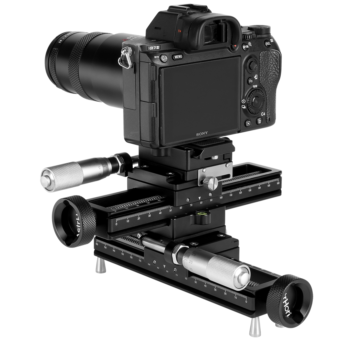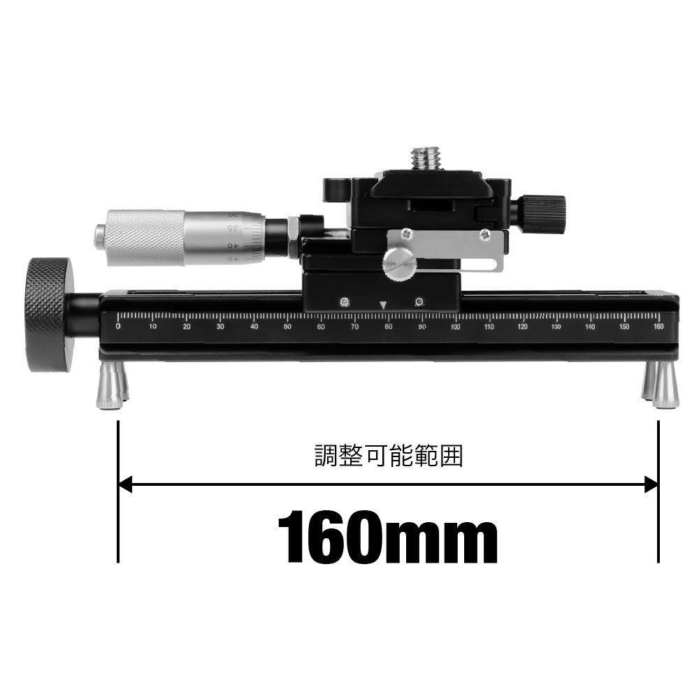 AstrHoriのマクロフォーカシングレール「AH-MGA170」は、高倍率のマクロ撮影に対応するために新開発された製品です。高精度かつ安定した操作を実現するために設計されており、フォーカススタッキング撮影に最適な製品です。レールの調整可能範囲は160mm、三脚を動かすことなく広範囲の撮影が可能です。